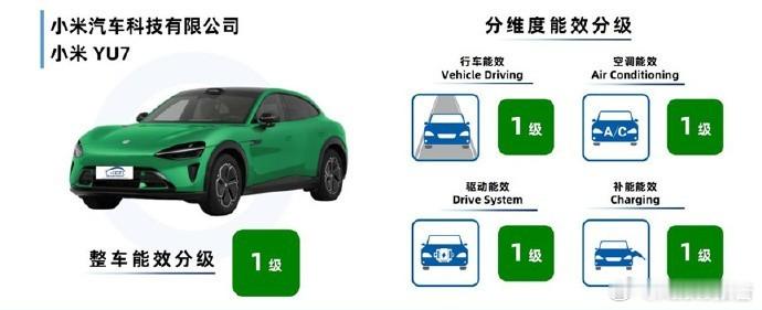 雷军:小米YU7四大核心指标均获“一级能效”认证雷军公布了小米汽车的一个好消息:中国汽车能效开发与检测认证专业联盟 2025年纯电动乘用车能效分级测评结果:小米YU7 在行车能效、空调能效、驱动能效及补能能效四大核心指标中,均获“一级能效”认证。汽场全开雷军小米yu7新能源汽车