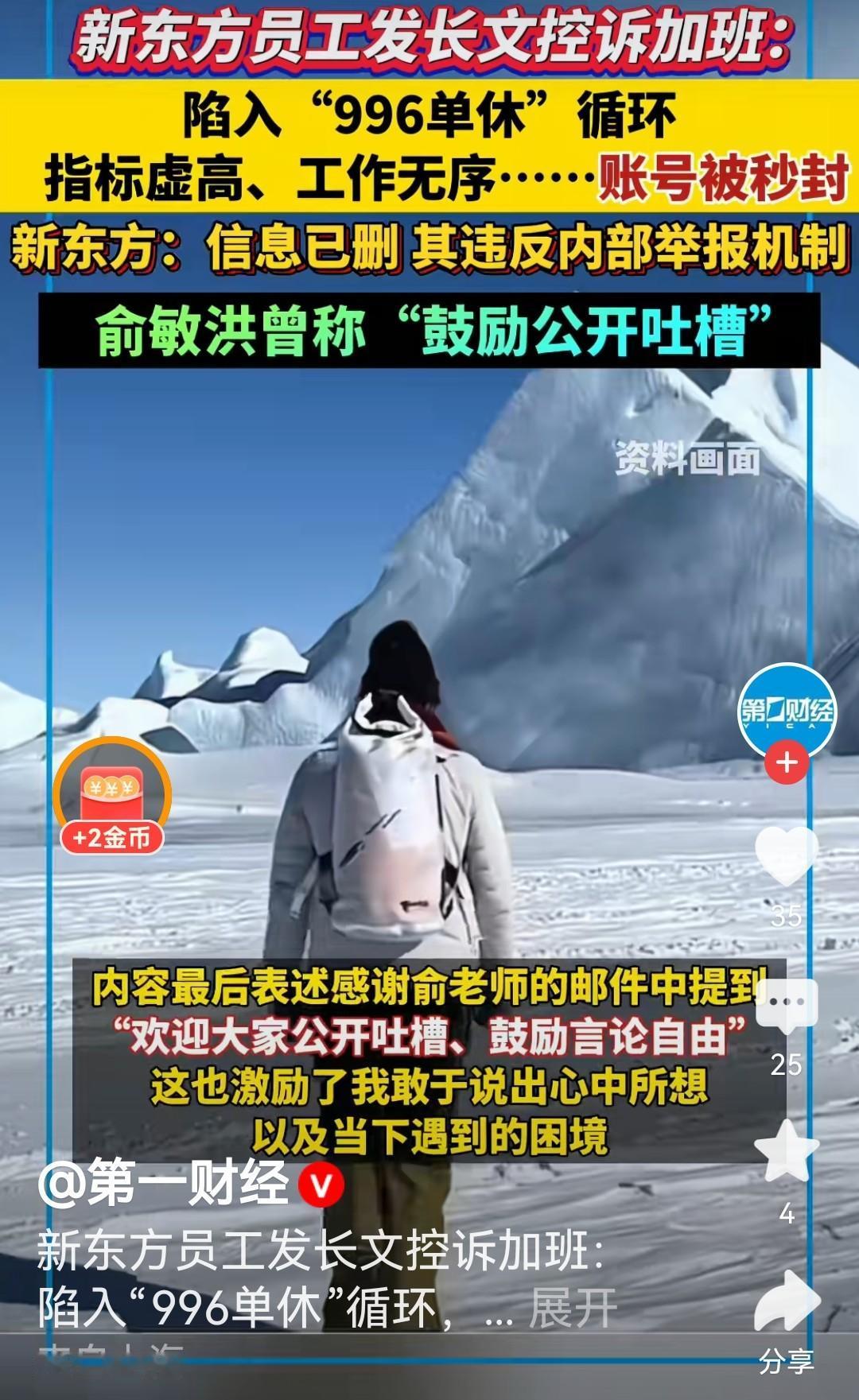 太搞笑了 老板诗和远方 员工996 居然员工发文陈述事实 还被删帖,封号 那她曾经鼓励吐槽是啥意思? 是放空话? 掩耳盗铃? 此地无银三百两?