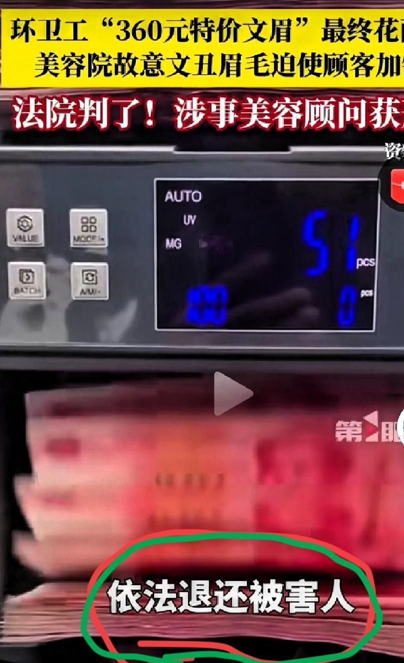 真的是太缺德了!有些无良的商家为了赚钱竟然不择手段! 现在这种做眉毛的店,广告打着399,进店后就变成几千元。 河南一环卫大姐看到低价眉毛,我选择去做了,谁知这些无良的商家故意“做黑做丑”,少放舒缓胶,把细针换成粗针,让顾客疼痛难忍,只好选择几千块钱的纹眉,后期修复还要上万块,而且在这家店上当的不止是这位环卫大姐,几十个人都上当受骗,这家店涉案金额高达75万元。 最后,在群众举报下,这家店老板获刑一年的牢狱之灾,退还了涉案金额。其实像他这种店,到处都有,便宜可以,但是你不至于故意给人家做坏做丑吧,这种昧着良心的钱,你们赚的心安理得吗? 我个人认为这种坏了良心的老板判一年的徒刑太轻了,罚款金额也太少了,大家觉得呢?