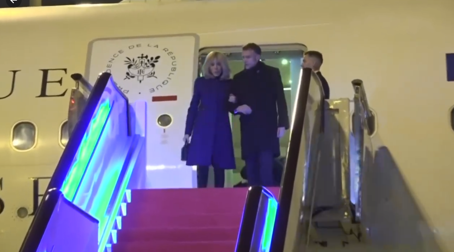 12月4日马克龙抵达成都机场,并没有和布里吉特同时出镜,而是先走到机舱门口,看夫