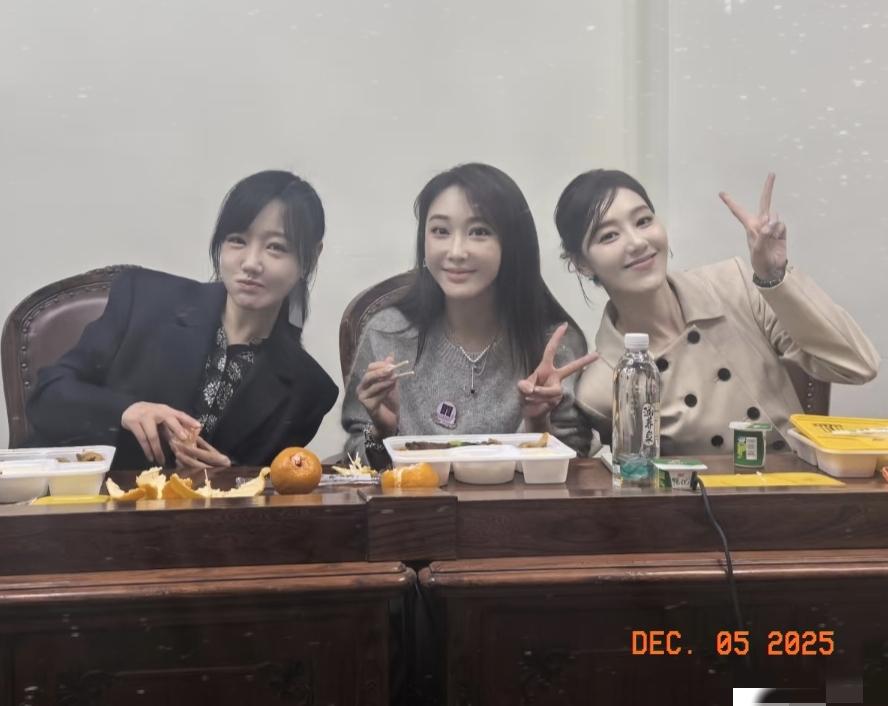 三姝同框:我一眼就认出了肌肤胜雪、俊目流眄、怡颜悦色的大美女王冠与面庞浮肿、眼袋明显的薛佳凝,中间长发垂肩、执筷比耶的女星是谁?