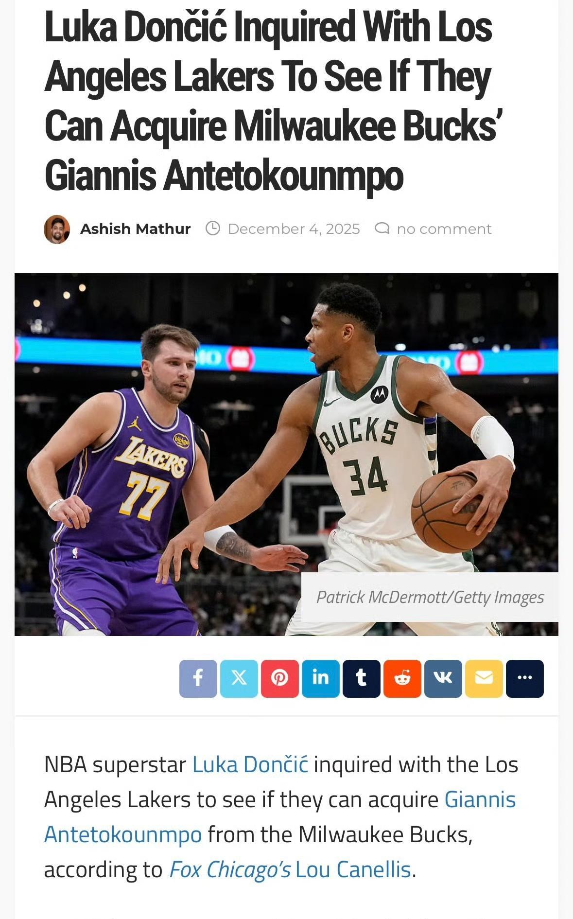 低级别消息源Ashish Mathur:据芝加哥福克斯电视台记者Lou Canellis报道,东契奇已向湖人队询问,了解球队是否有能力从密尔沃基雄鹿队引进字母哥。 字母哥在休赛期曾希望被雄鹿交易,而他的首选下家是纽约尼克斯队。 “我可以明确告知,”Lou Canellis表示,“几个月前,扬尼斯就希望被交易,他的第一选择是加盟纽约尼克斯。但尼克斯方面不愿让步,只愿意提供唐斯作为核心筹码,对于雄鹿队而言,若要放走字母哥,这样的报价显然无法达成交易。” “我能确认的是,湖人队曾进行过询价,东契奇本人也亲自打听,想知道湖人能否与密尔沃基雄鹿队敲定这笔交易。要知道,扬尼斯想离队的核心原因是渴望夺冠。” 若想签下字母哥,湖人队大概率需要送出所有未来选秀权,外加里夫斯和八村塁。这位“希腊怪兽”的合同中并无交易否决权。