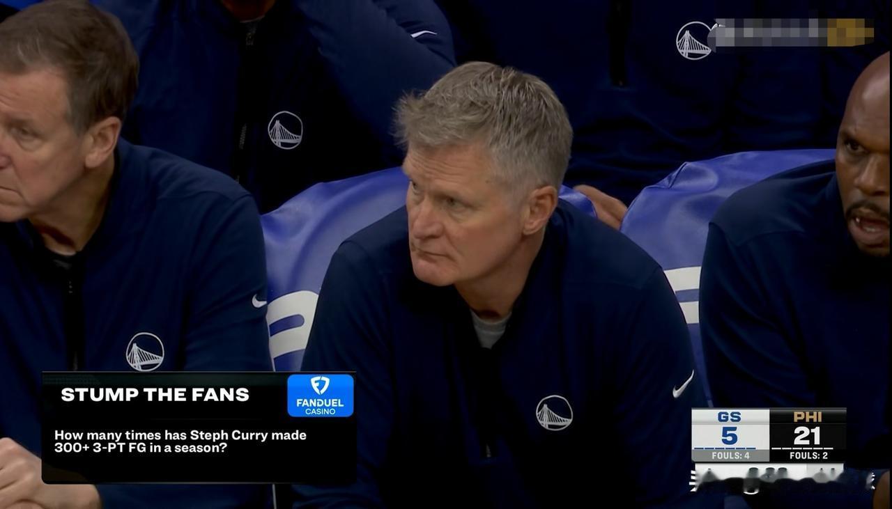 勇士主帅科尔真是彻底的懵了!在今天勇士客场挑战76人的比赛中,当时比赛进行到了第一节的3分22秒,勇士以5:21落后于对手,形势看起来极其被动,当转播镜头给到勇士的教练席时,只见科尔教练一脸懵逼的坐在场下,整个人看起来特别的迷茫,科尔教练做梦都不会想到自己的球队在第一节比赛中就被对手打花了。