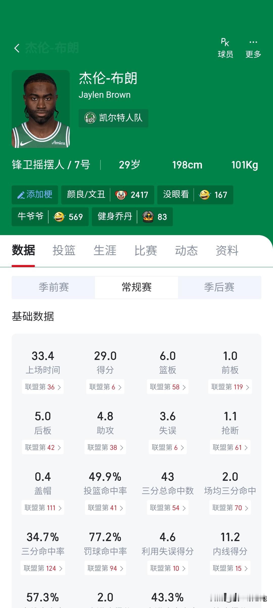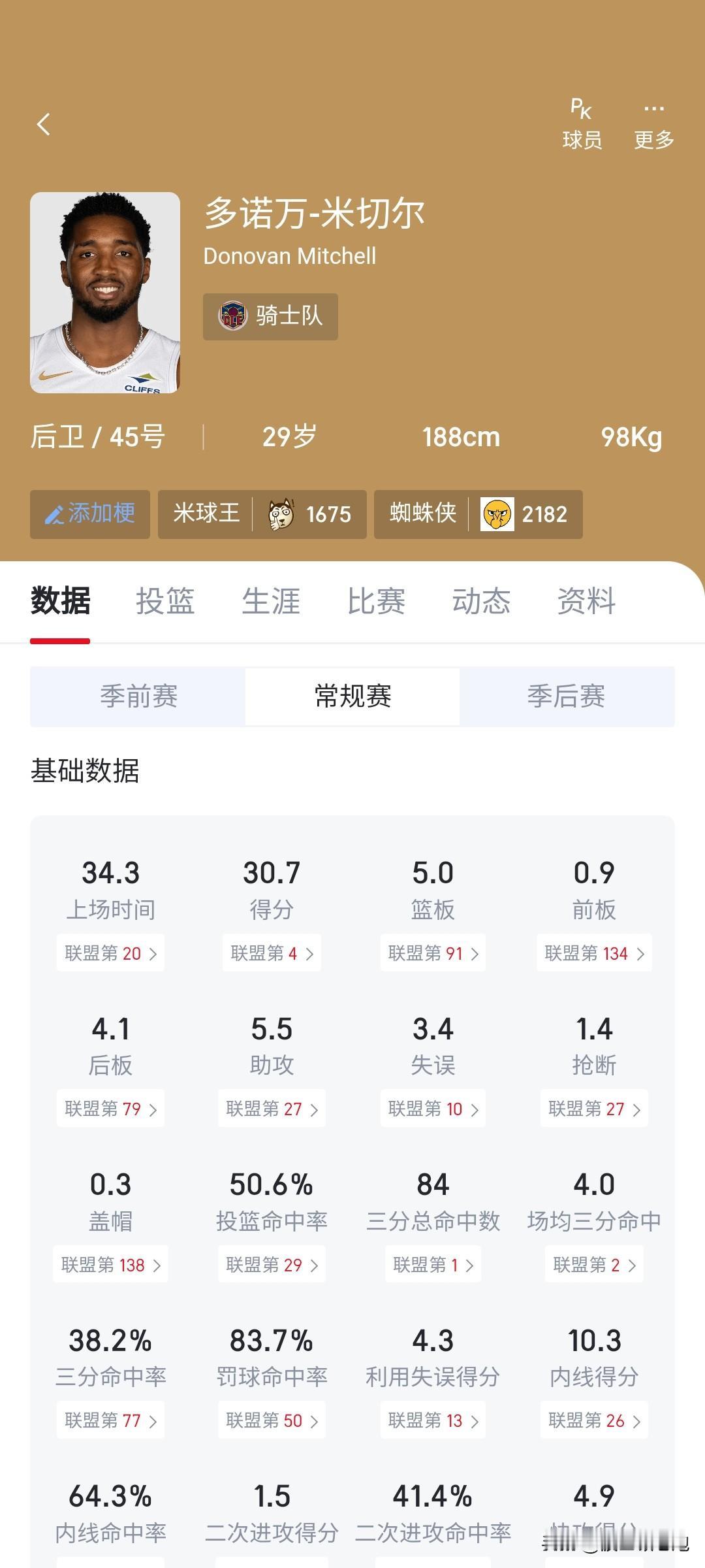 本来以为杰伦布朗这效率在东部已经无敌了,没想到居然还有后卫比他夸张。 米切尔这个数据也太逆天了吧,一个小后卫超过50%命中率,而且是在场均命中4记三分球的情况下。虽然杰伦布朗超过58%的真实命中率已经是他生涯最佳了,但是米切尔的真实命中率达到了64%,骑士赶紧想办法给加兰处理了吧,太拖米神后腿了。 难道杰伦本赛季的最佳二阵悬了?亚历山大和东契奇铁定是最佳一阵,西部那边还有库里和里夫斯,加上米切尔和布伦森,杰伦太难了。