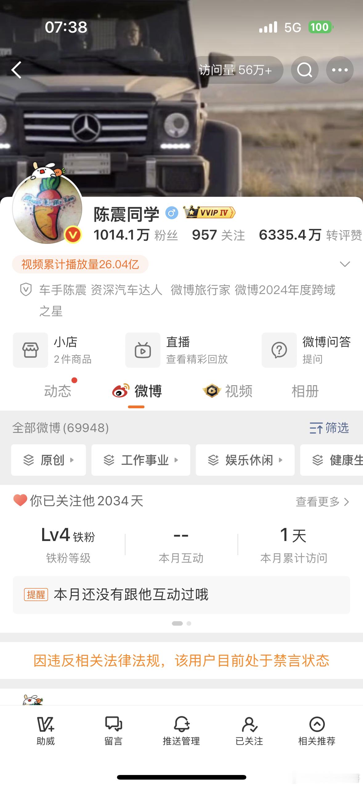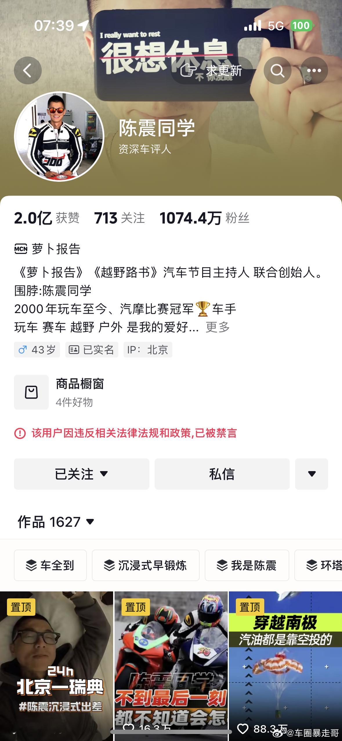 陈震回应被全平台禁言不知道封多久,一条广告报价大几十万 应该损失不少吧