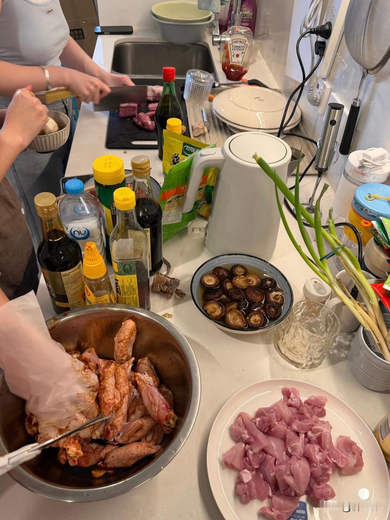那些年合租遇到的事儿④ 在我们三人的忙碌中屋子很快就收拾的整齐了,看起来多少也有了一点家的温馨。我们三个瘫坐在床上,有一搭没一搭的聊着天。 蕾蕾:一会咱们一起去菜市场买菜吧,你做什么菜最拿手? 我说:家常菜都可以,虽然谈不上多精致,但是还是可以吃的。 小雪:那咱们走吧,老公你拿着包包,做一个懂事的小跟班。今天便宜你了,有两个大美女陪你逛菜市场。 这话说的还便宜我了,你们这是拿我当拎包的,又不是左右挽着我… 小雪:哎呀…你这是想啥呢?还挽着你,大色狼! 我们在菜市场买了鸡翅、排骨、绿菜心、西红柿,回到蕾蕾家时已经快天黑了。蕾蕾租的房子是大一居,布置的很有情调,蓝粉相间的装饰,感觉很浪漫。 谁也没有想到在厨房收拾食材时,居然让我瞬间有点…本来厨房就不大,我们三个都进去以后有点拥挤,你来我往的忙碌中,我居然有好几次蹭到了蕾蕾。 而我也很不争气的居然有了反应… 未完待续…