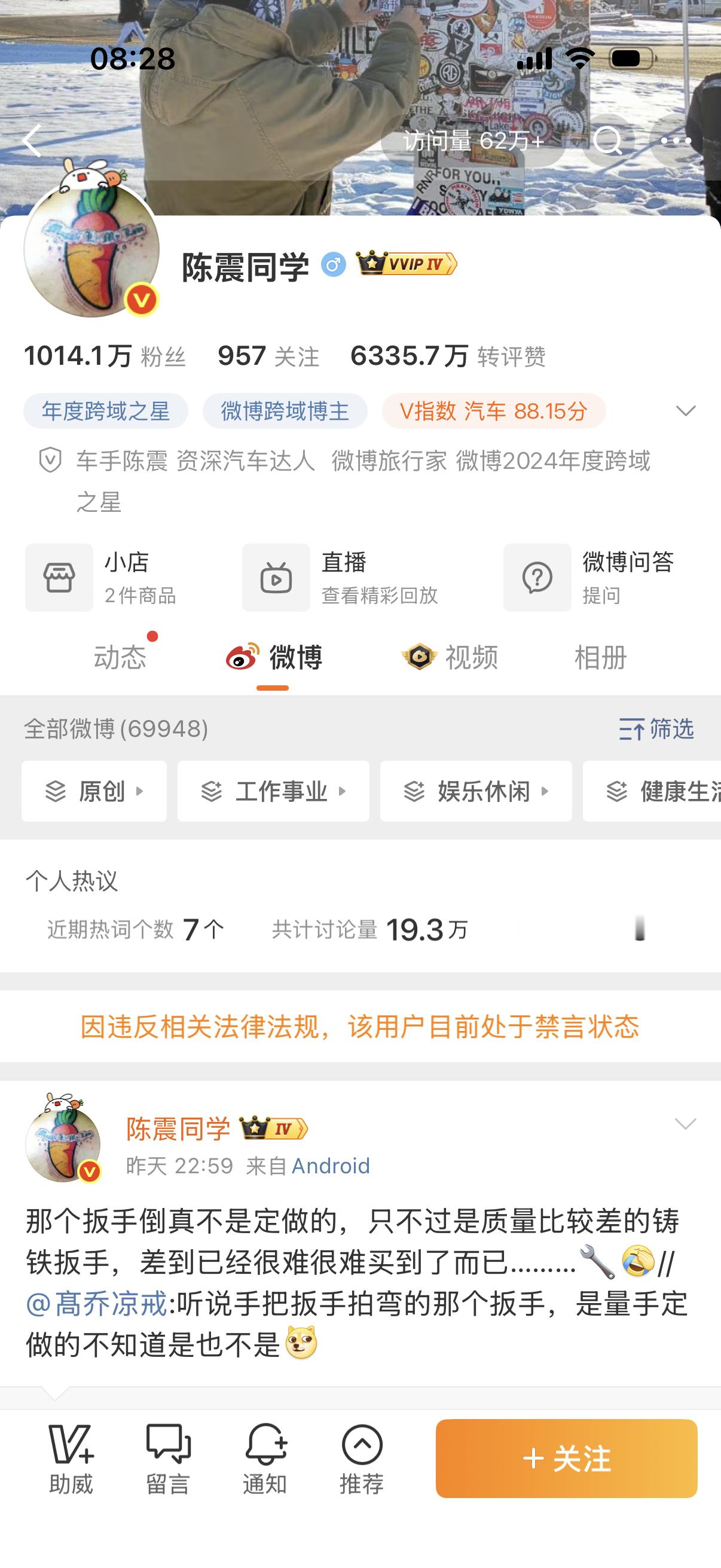 陈震多平台被禁言就不懂多问一句,只是好奇,也不是杠,会让他的收入大砍吗?