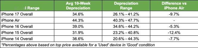 iPhone Air 1TB十周贬值47.7%,创近三年最快纪录。 手机作为电子消费品,长期来看价格都是下滑的,不保值的,但是在二手手机市场,iPhone相对来说还是比较保值,个别型号除外