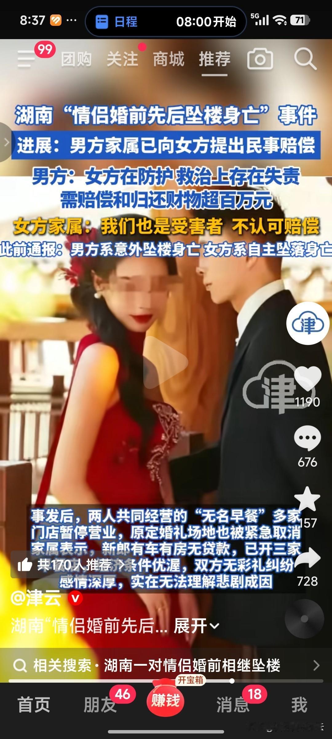 湖南情侣结婚前一天相继坠楼身亡的事有了后续,女方家属愿意退还16万彩礼,但是男方