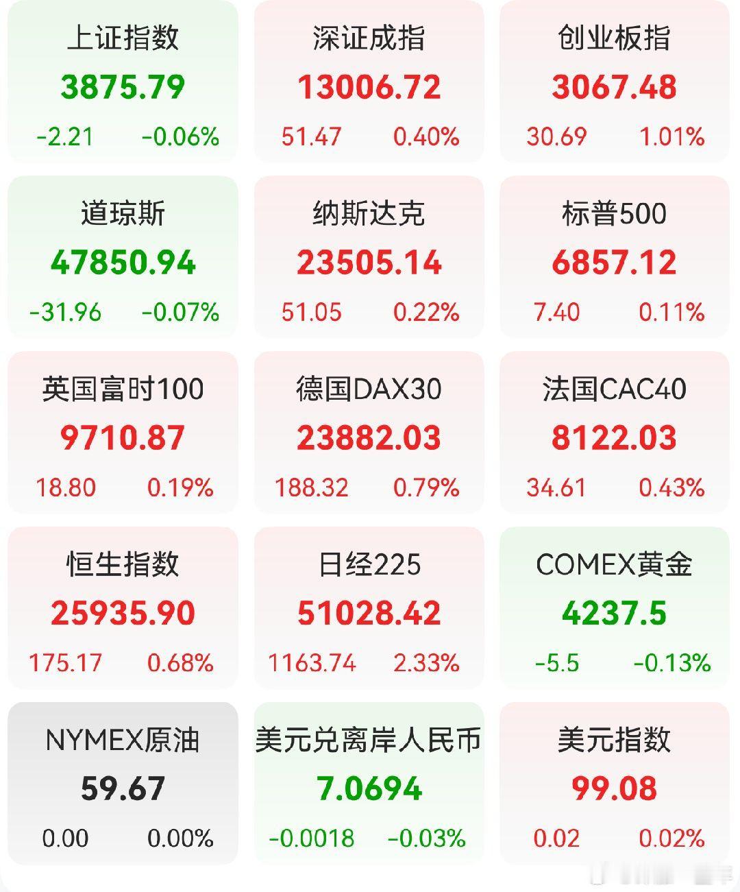 A股 昨日,全球主要市场指数情况