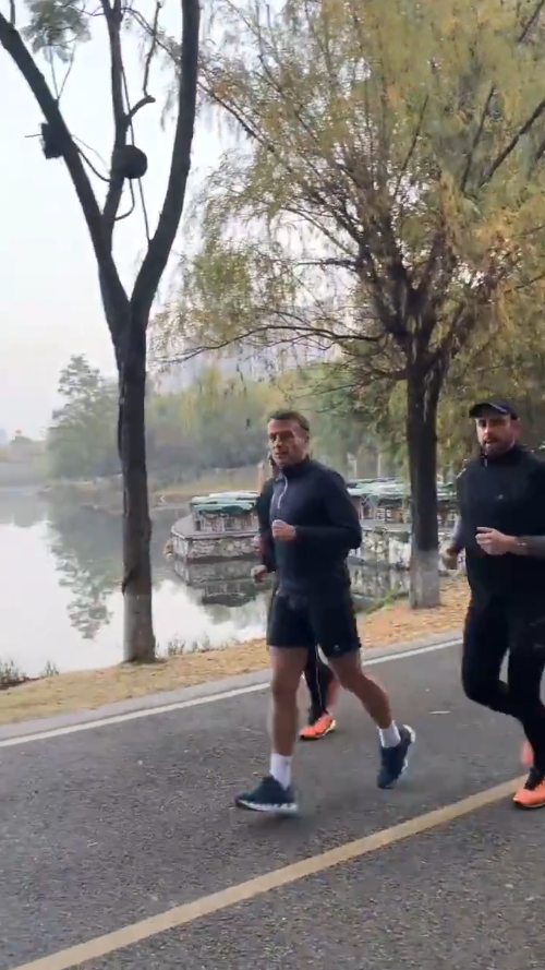 马克龙在成都晨跑,都当总统了还这么自律,普通人还敢躺平吗?12月5日马克龙在成都锦城湖公园晨跑被偶遇!不少网友都说总统先生也太自律了,出访国外还坚持晨跑健身,只能说优秀的人到哪里都优秀,自律的男人更有魅力。 只见总统先生穿着单衣短裤,在保镖的陪同下跑步,看到路人有人拍他,还配合对镜挥手打招呼,没有一点儿总统架子,十分接地气。 看路人拍到的画面,陪伴总统先生晨跑的保镖没有十个也得有八个,公园里也有健身的居民,足以说明中国的成都很安全。