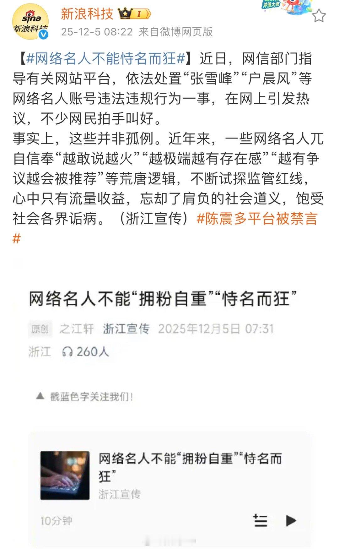 陈震多平台被禁言陈震多平台被禁言,理由是违反相关法律法规,想到前几天网信公布网络