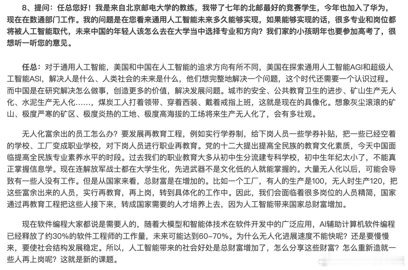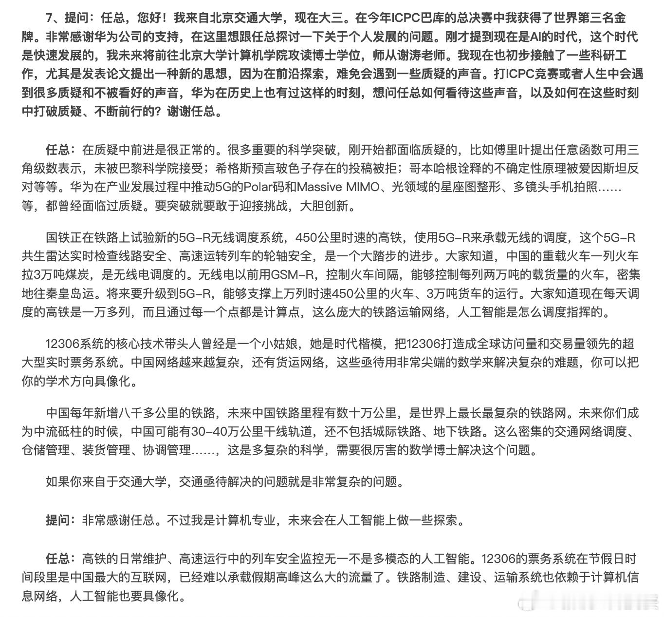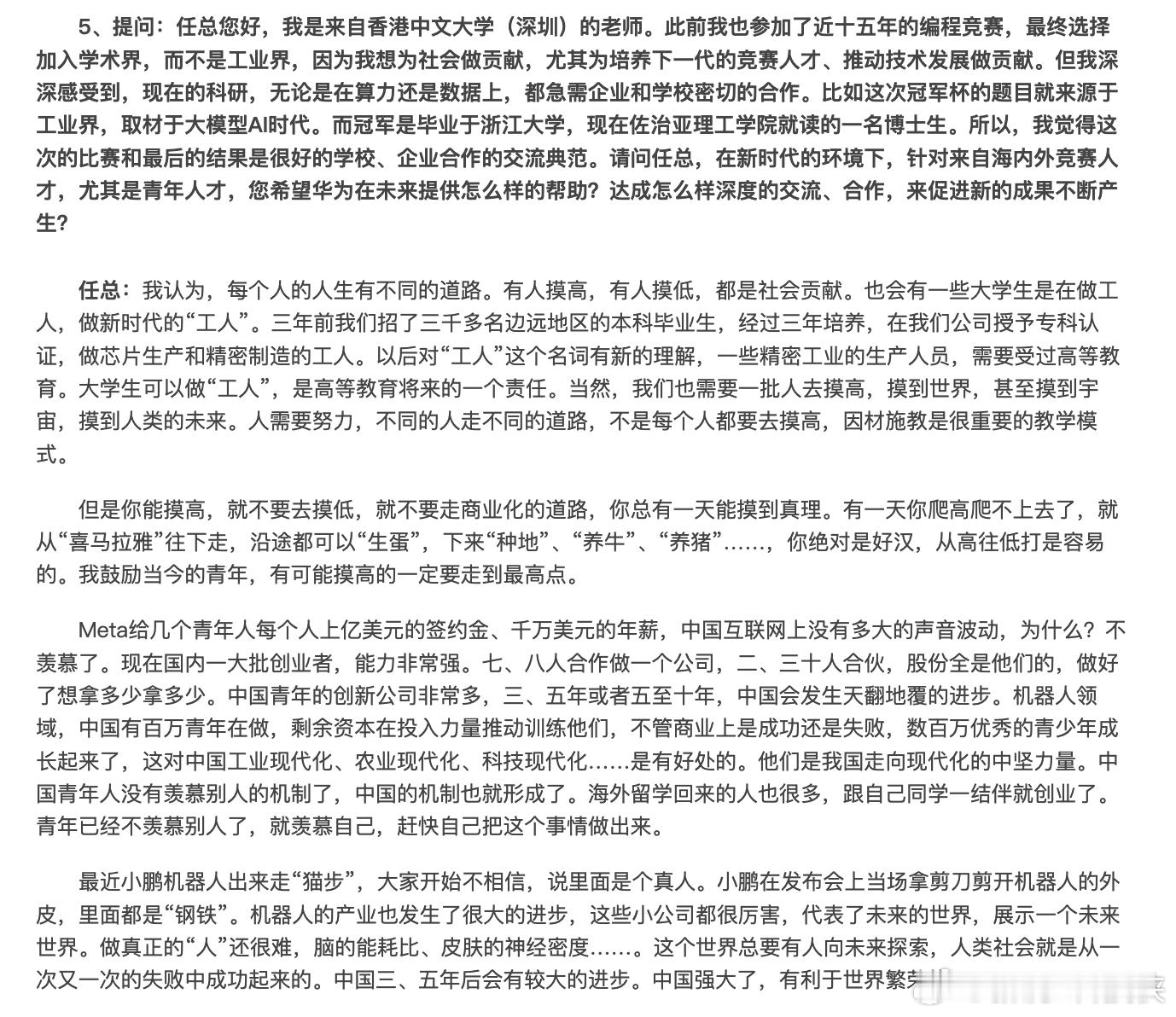 任正非说未来的希望在青年任老爷子这话真说的太对了,未来的希望在青年,青年一代敢闯敢拼,有想法有行动力有干劲。特别是现在信息时代,网络沟通让全球的交流更便捷,而青年又是在这个背景下成长起来的,大家更熟悉信息时代的玩法。身为其中一份子我们每个人也应该发挥所长,找到自己感兴趣的领域并为之努力,从近了说能让家人和父母生活的更好,从长远说能快速推动这个整个社会的进步和发展。