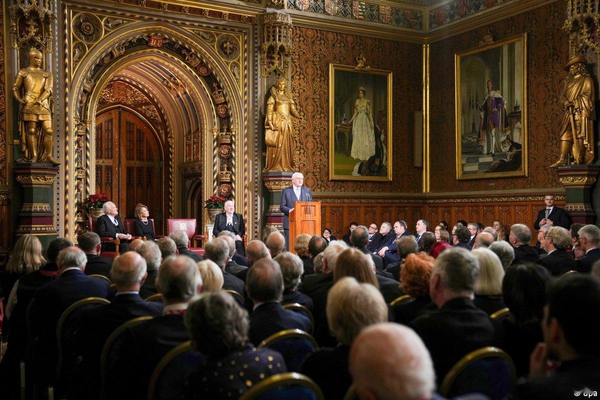 英国王室 🇬🇧🇩🇪12月4日,德国总统弗兰克-瓦尔特·施泰因迈尔阁下和夫人埃尔克·比登本德国事访问第二天行程。总统夫妇和国王夫妇出席“大帮手”组织合作举办的招待会;总统夫妇在温莎城堡和国王夫妇告别;总统在威斯敏斯特宫向英国两院议员发表讲话;总统夫妇访问威斯敏斯特大教堂,向无名烈士墓敬献花圈;总统夫人以前法官的身份访问英国皇家司法院,会见英格兰和威尔士的首席女大法官;总统夫妇访问东伦敦的博比·穆尔学院。感谢德国驻英国大使馆照片世界各国王室查尔斯三世卡米拉王后