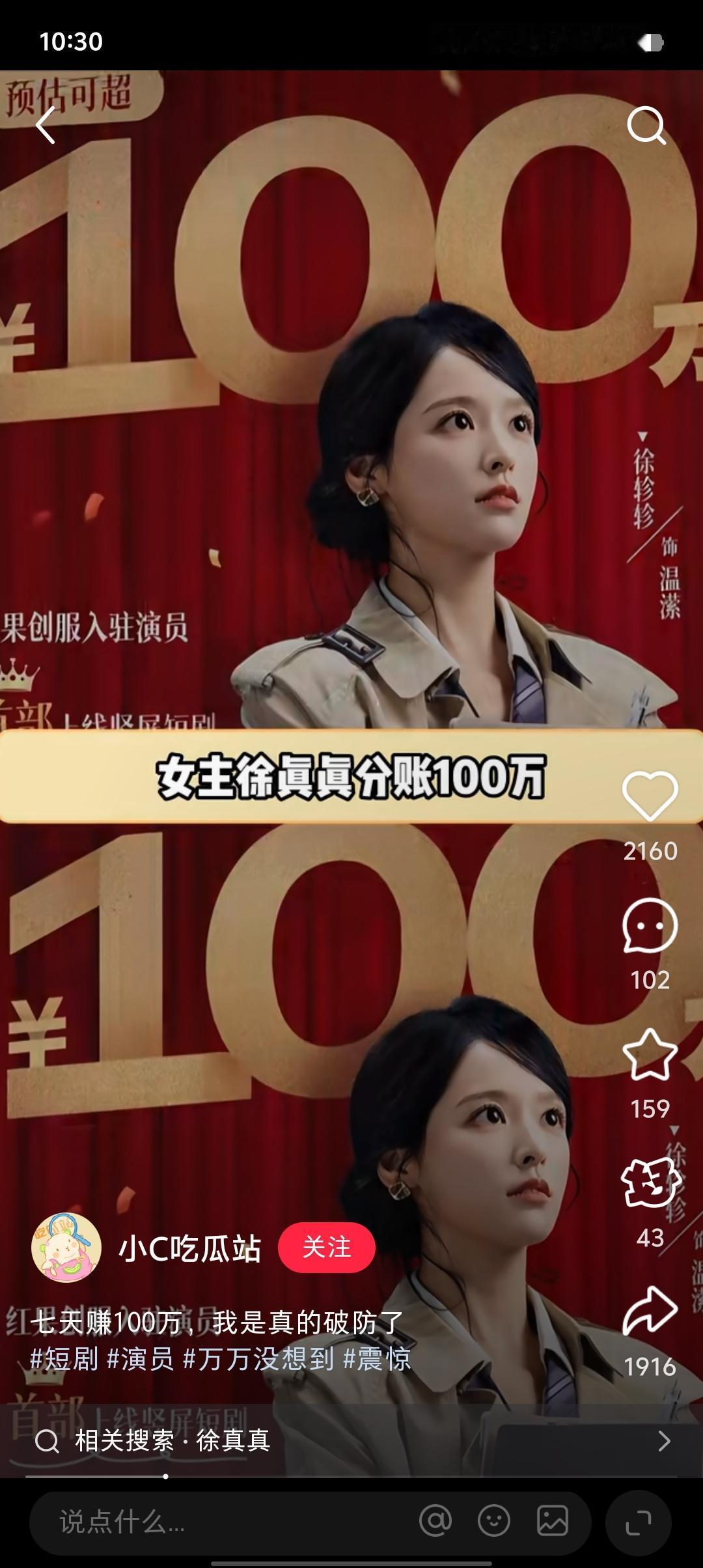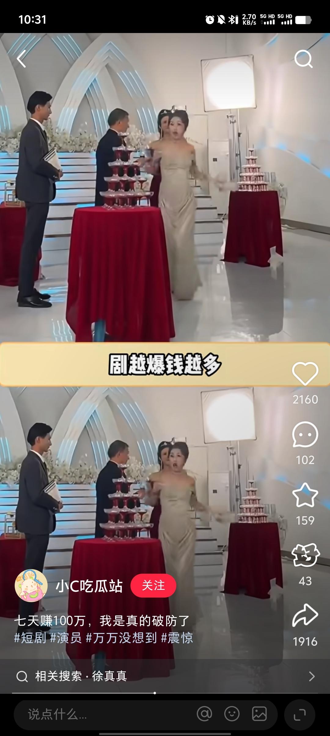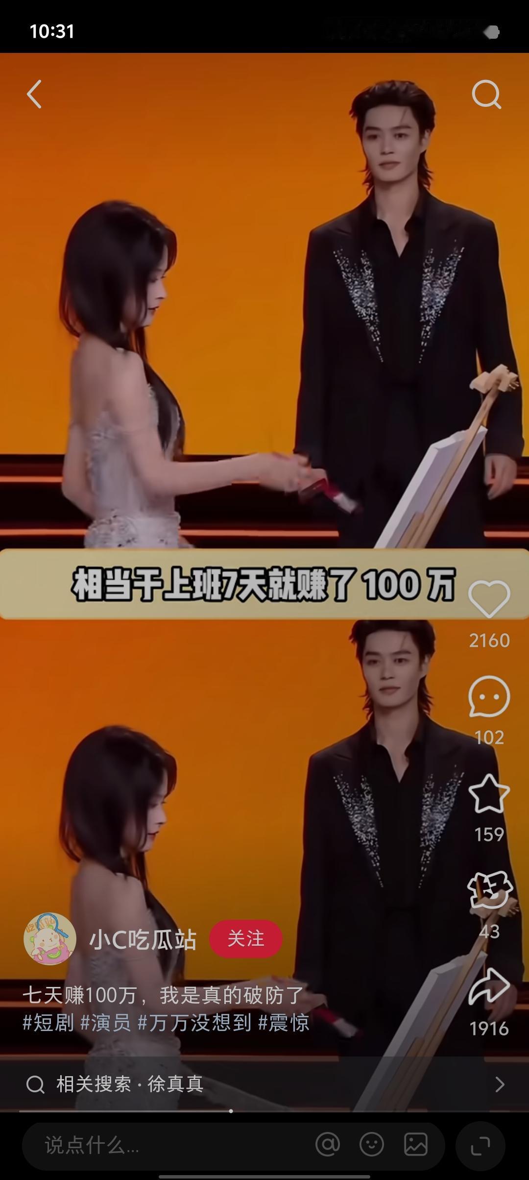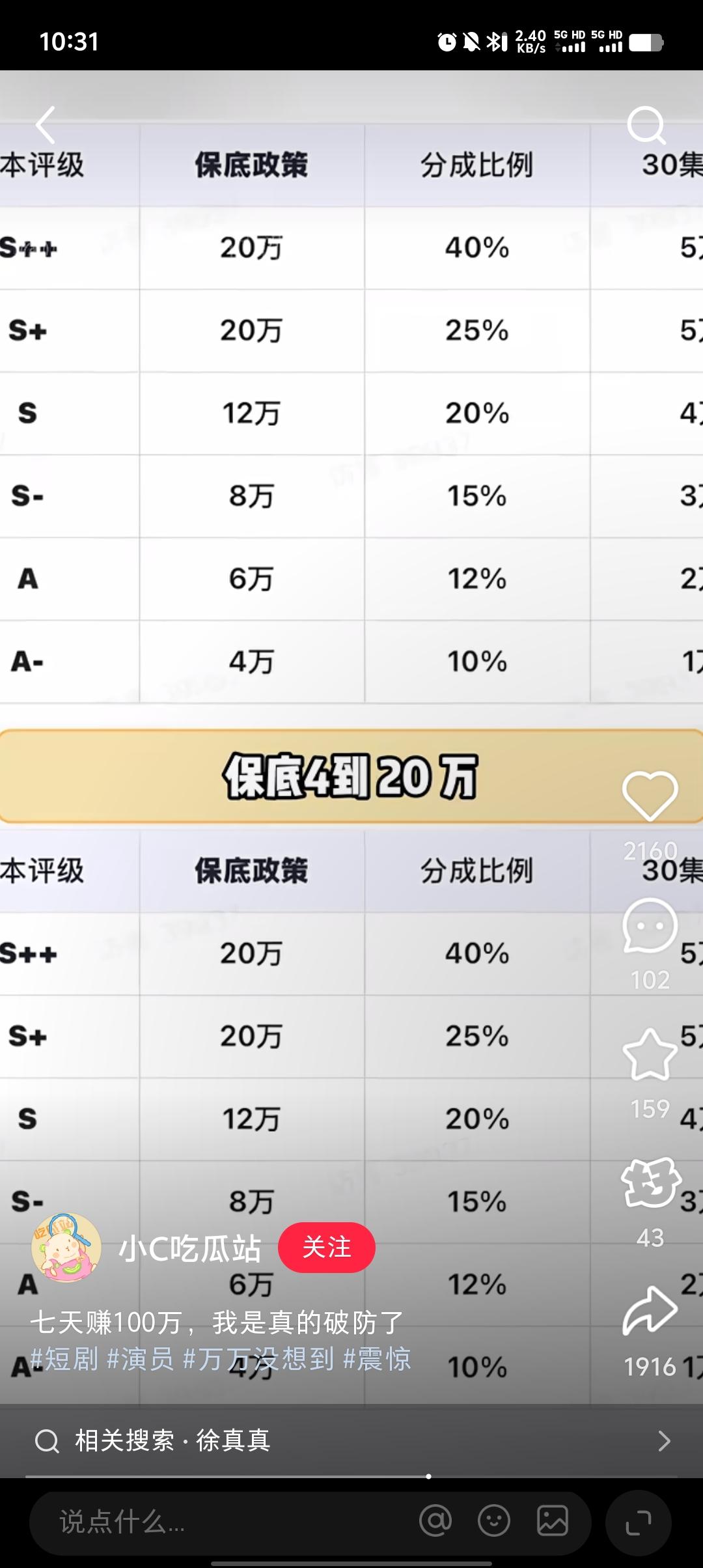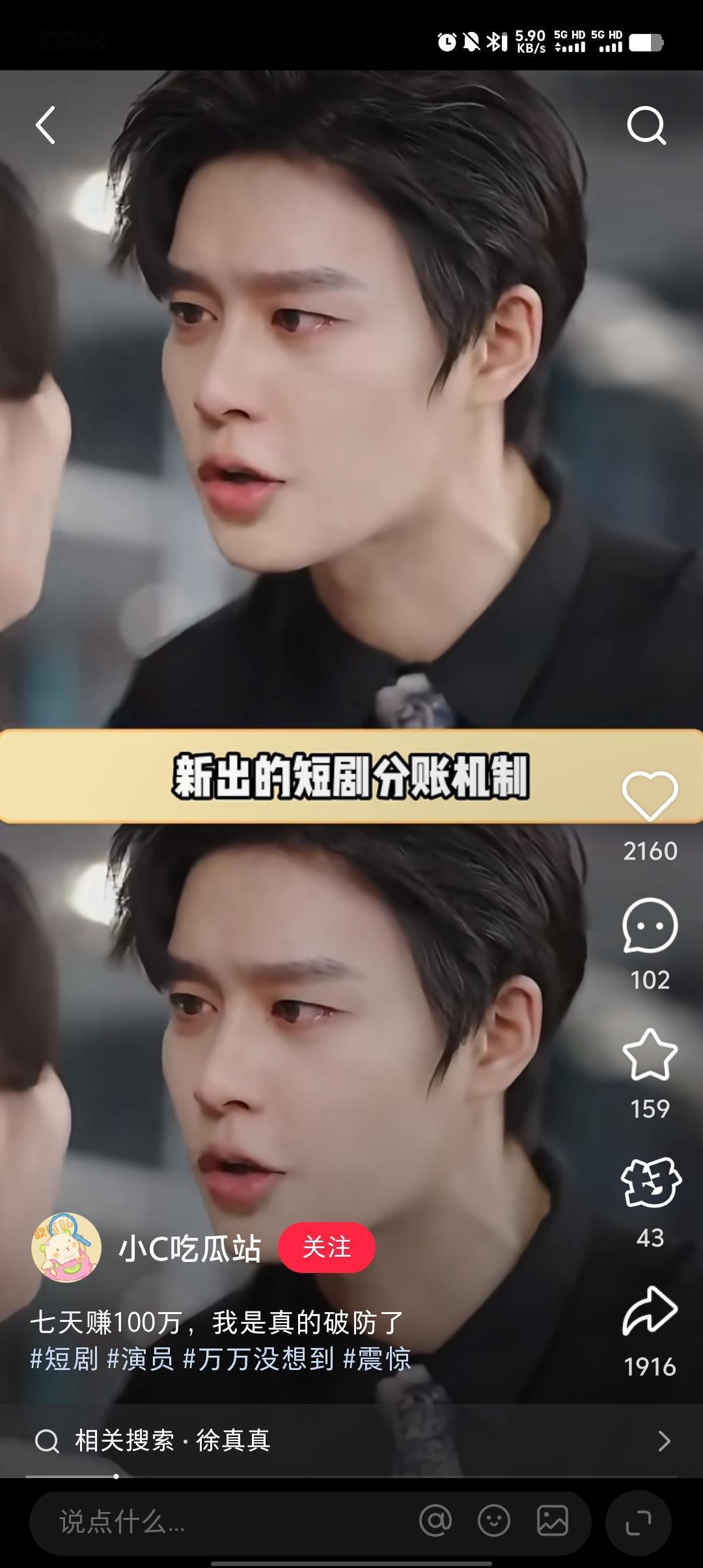 漂亮真的可以当饭吃。现在的短剧7天赚100万。 新出的短剧分账机制,男主王凯木预计分账150万,女主徐真真分账100万,徐真真还是青你2的选手,这收入,直接碾压某些出道idol,而且短剧拍摄周期周期一般为七天,相当于上班7天就赚了一百万,剧越爆钱越多,片酬是底薪,分账是奖金,保底4到20万,头部演员日薪1.5到5万,像柯晨,曾辉都是非科班出身的演员,而且普通群演一天都二百短剧收入 王凯沐剧单 郑州短剧日薪 短剧薪酬 徐艺真演技 徐真真短剧 剧量算数