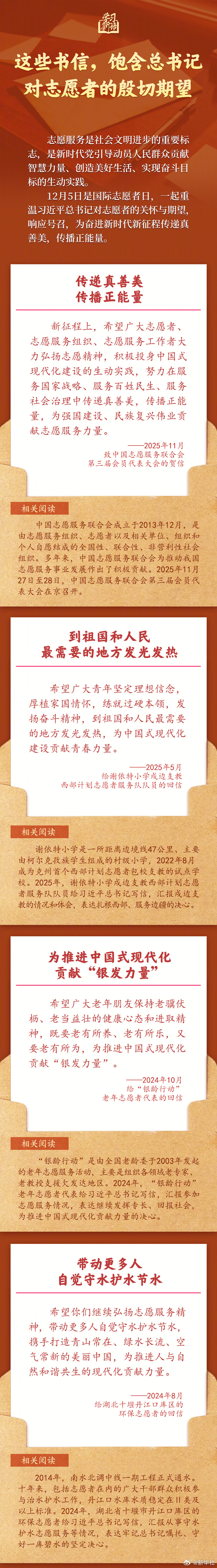 #重温总书记给志愿者的回信#【#学习新语#|这些书信,饱含总书记对志愿者的殷切期望】志愿服务是社会文明进步的重要标志,是新时代党引导动员人民群众贡献智慧力量、创造美好生活、实现奋斗目标的生动实践。12月5日是国际志愿者日,一起重温习近平总书记对志愿者的关怀与期望,响应号召,为奋进新时代新征程传递真善美,传播正能量。