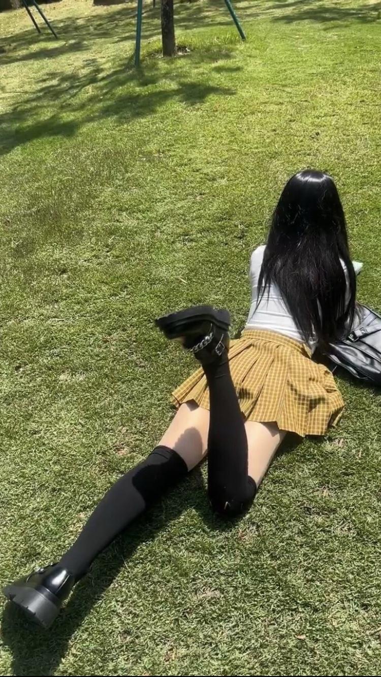 藏蓝色紧身针织衫和黑色皮质包臀裙这种组合属于轻熟御姐的风格。兼具优雅和干练的属性