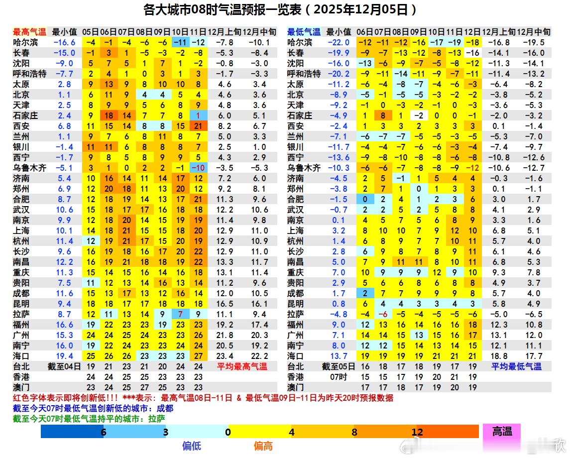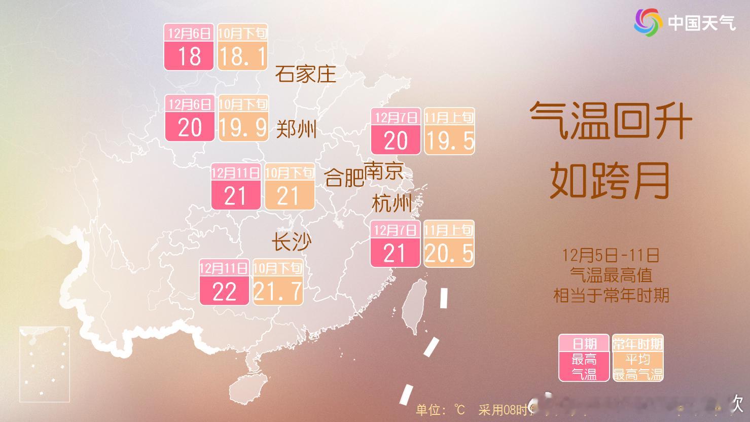 【大暖之后大降温】本周末到下周,我国将经历气温的大起大落。本周末到下周初,中东部多地气温将达到近期高点,华北南部到长江中下游地区,大幅偏暖,暖得堪比常年10月下旬或11月上旬。7-8日有弱冷空气导致降温,但不改偏暖格局。9-11日在冷空气到来前,多地气温继续明显偏高。但10日有冷空气开始影响新疆,之后11-13日东移南下,我国多地气温将从偏高转为偏低。10-13日的冷空气,大概率会达到寒潮级别(冷空气自身实力强,降温前基础温度高,因此降幅会很大)。不出意外的话,最快12月9日晚,最迟12月10日晚,应该又会看到中央气象台发布寒潮预警。