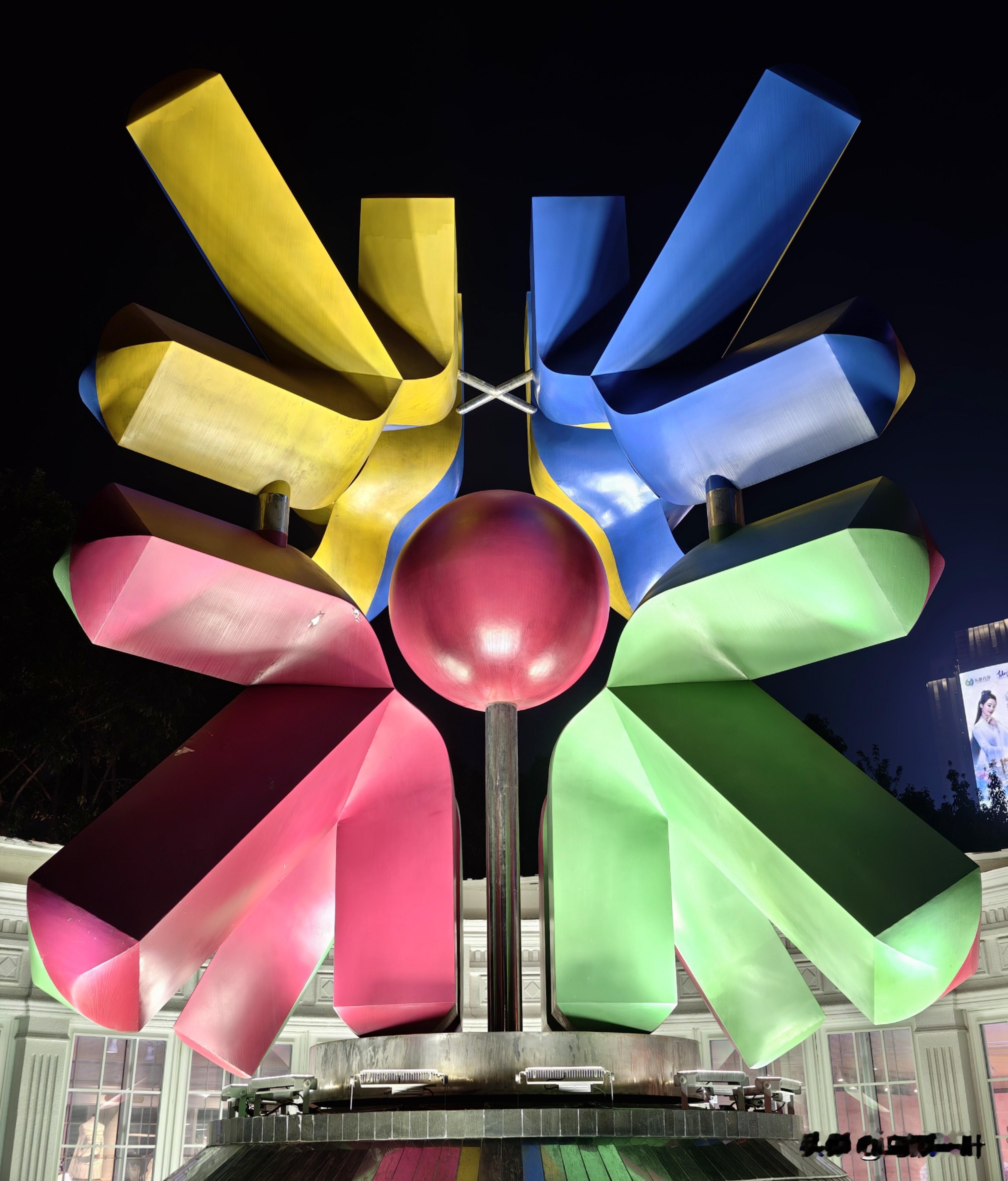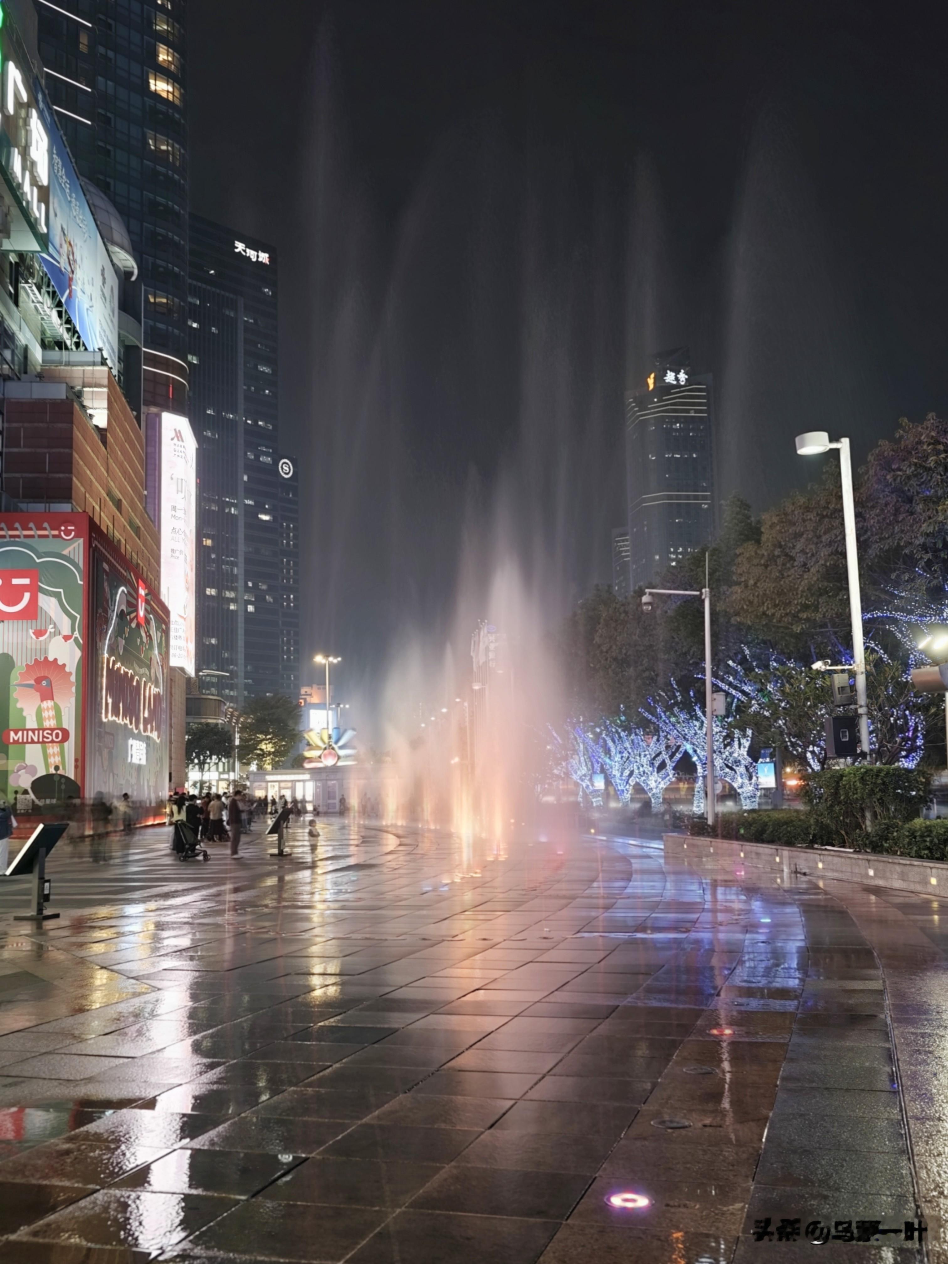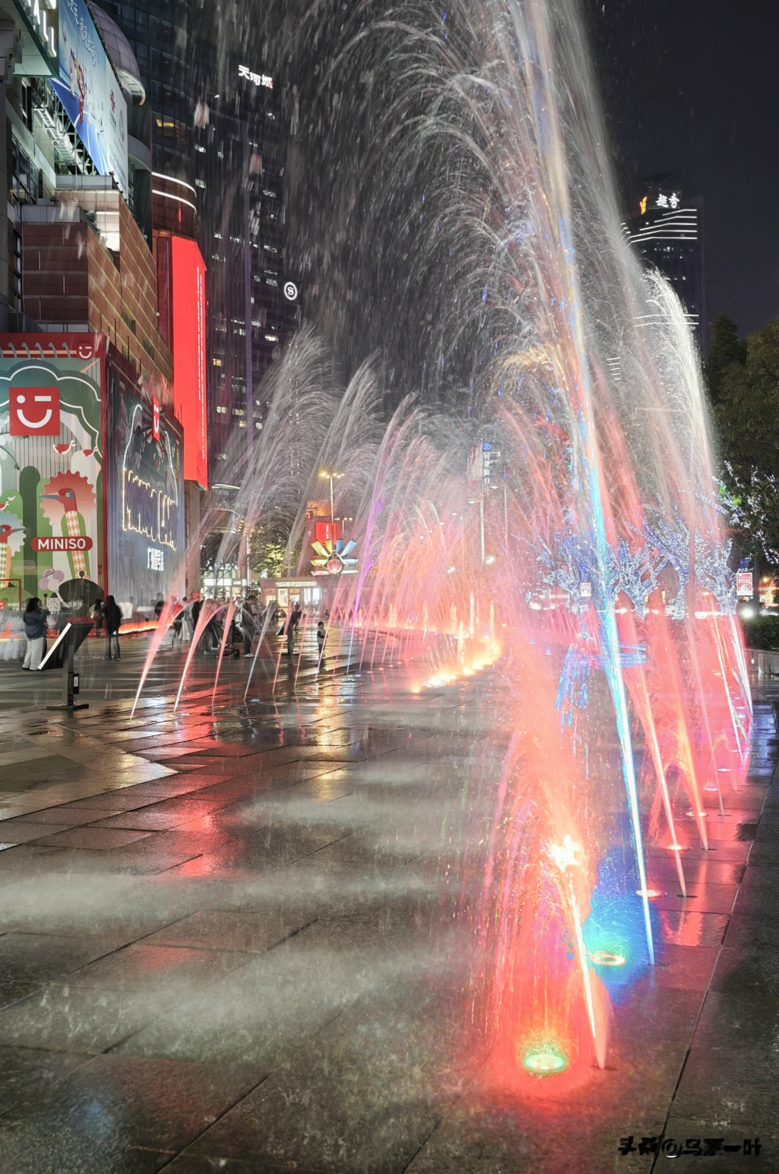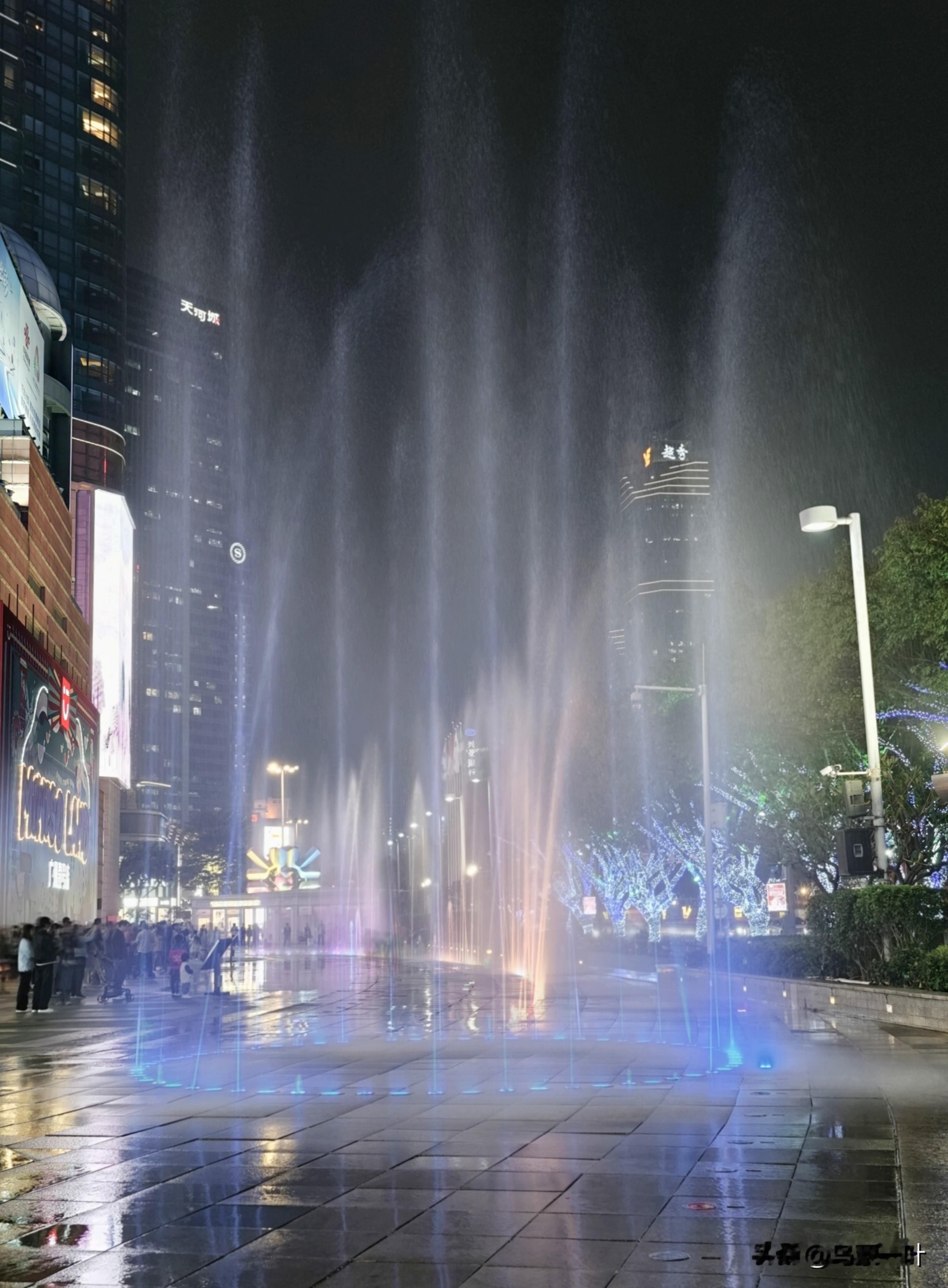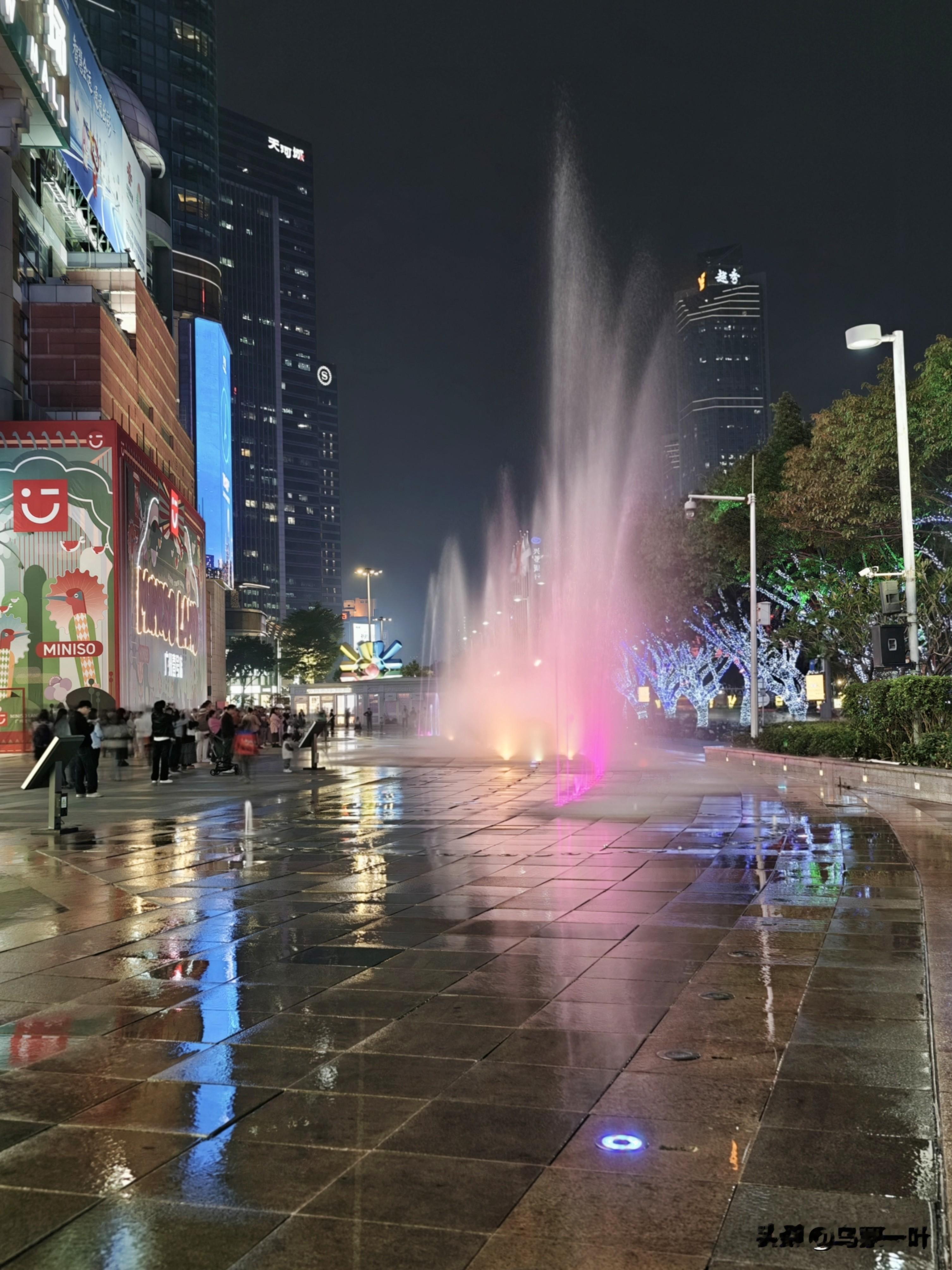 晚上夜游天河,走到正佳广场,适逢其音乐喷泉喷水时间,遂驻足观赏。水柱随音乐节律在夜色里跳舞摇曳,像一群身材细长的美女婀娜多姿,给城市的夜增添了许多美丽活力。