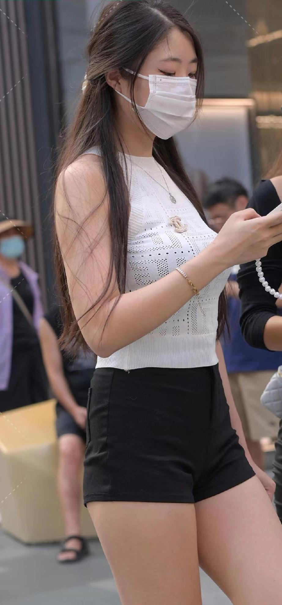 口罩美女街拍,这大长腿太吸睛了!"