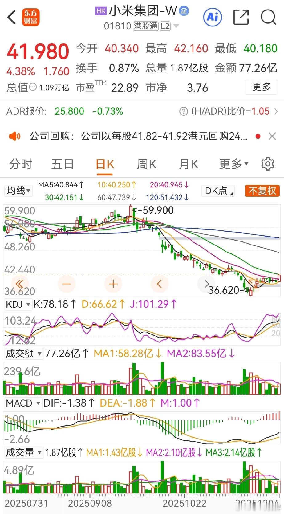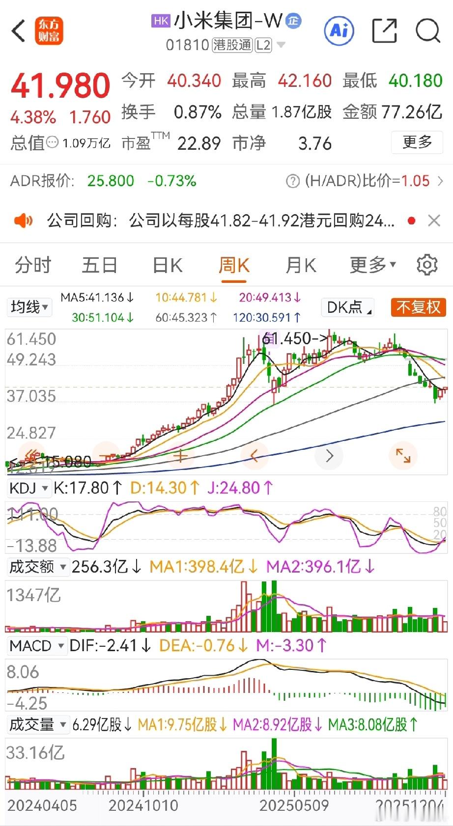 小米又又大手笔回购了,1个亿回购240万股股票, 这已经是它连续第四天掏钱买自家股票了,短短几天累计砸了超过10亿港元