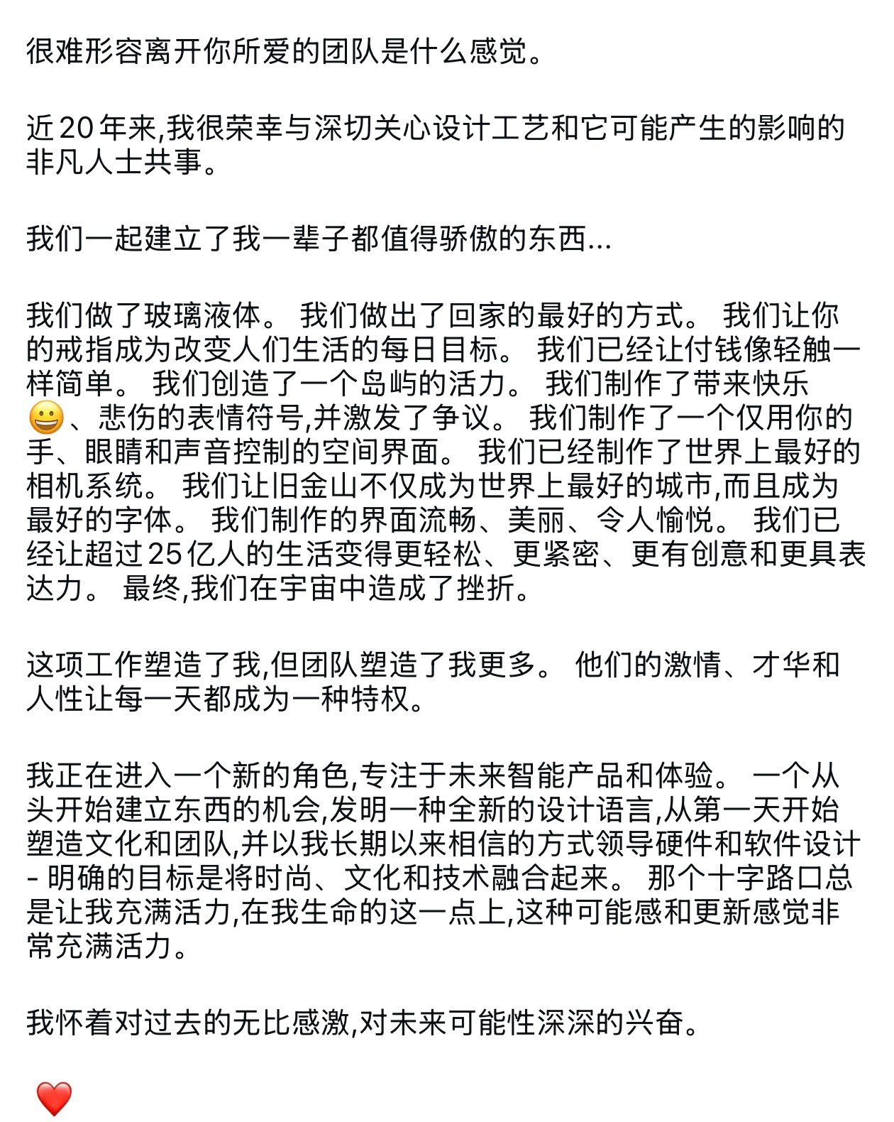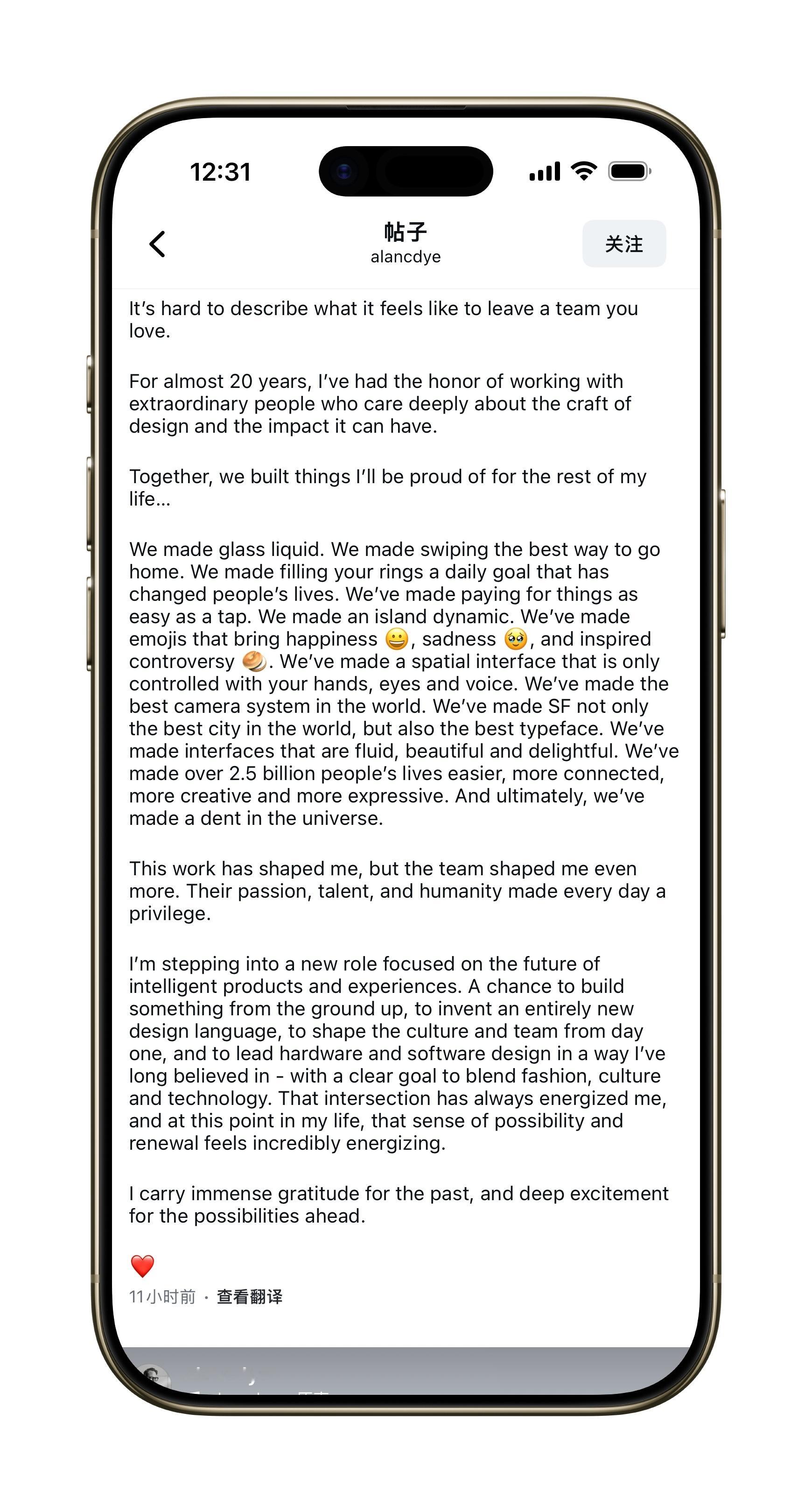 Alan Dye 的离职“宣言”。感觉说了很多,但好像又什么都没说