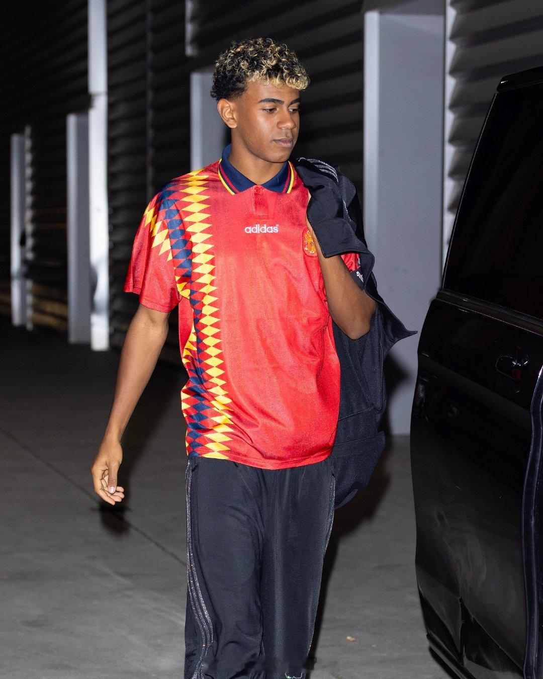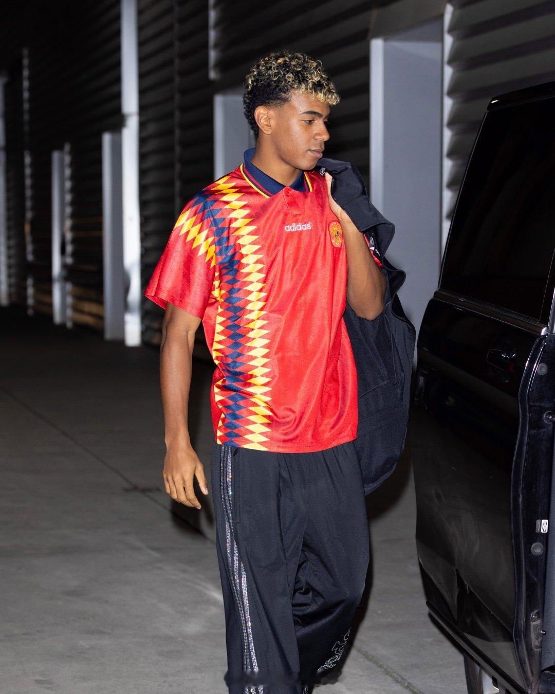 【经典复刻】亚马尔穿上了一件经典球衣,1994世界杯西班牙国家队主场球衣。