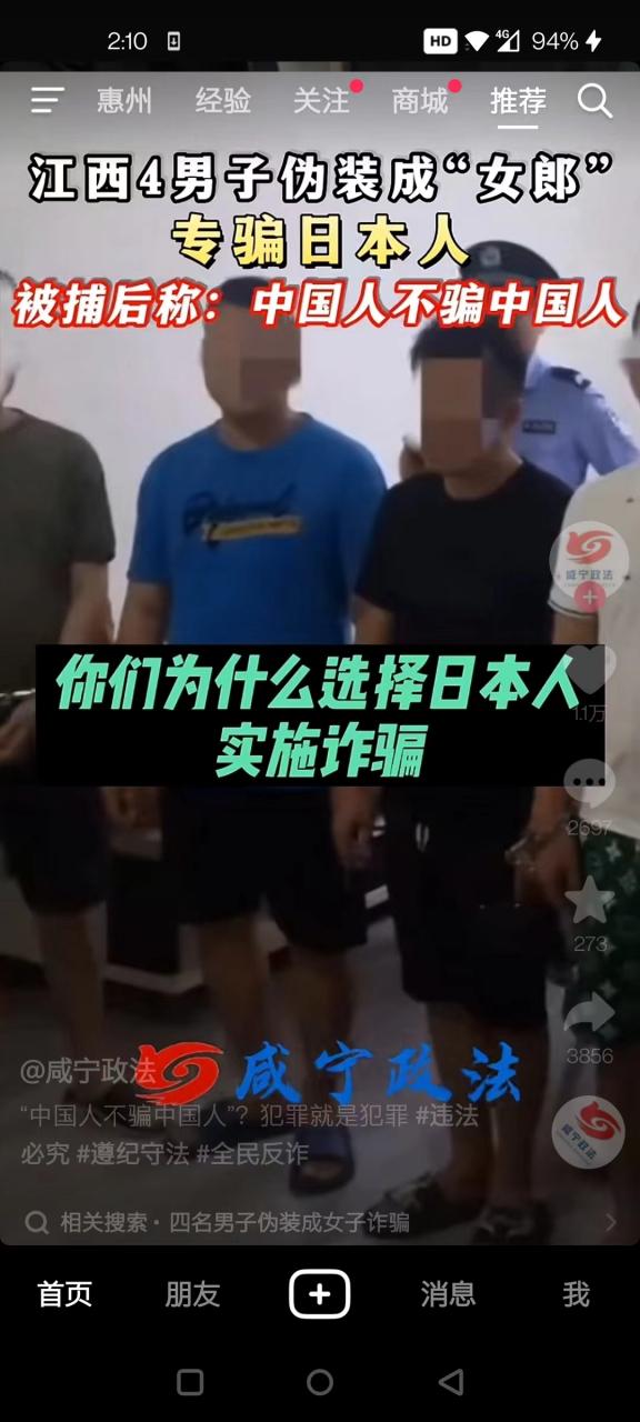 江西4男子伪装成“女郎”专骗日本人,被捕后称“中国人不骗中国人” 这事儿一出来,网上可就炸开了锅。这四名男子伪装成“援交女”,专门在网上添加日本地区男网友。四个大男人,躲在电脑后面,扮成娇滴滴的“女郎”,专门盯着日本人下手骗钱。以交通费、安全费等形式索要钱财,对方一旦转钱就拉黑。 被抓的时候,电脑屏幕上还闪着聊天窗口,那些甜言蜜语都没来得及删。审讯室里,几个人低头认罪,可一听他们辩解,差点没让人笑出声。帽子叔叔问他们“你们为什么选择日本人实施诈骗”,这四名男子说“因为中国人不骗中国人”。然后又问他们“你们还有骗其他国家或者地区的人吗?”他们说“没有,就是专门骗日本人”,这话一出,连办案民警都愣了。你说这是天真还是狡猾?明明干着违法的勾当,却想用一句口号给自己贴金,这脑回路清奇得让人无语。听着是不是有点滑稽?现实生活里,这种戏码比电视剧还精彩。 他们平时可能也就普通打工仔,但一上网,立马变身“美女”。照片嘛,全靠网上盗图,声音用变声软件处理,聊天时撒个娇、卖个萌,把那些日本男网友哄得团团转。目标挺明确,专挑日本人下手,原因嘛,一来日本网络诈骗监管相对松点儿,二来语言和文化差异大,容易得手。骗术也不复杂,无非是编故事要钱,生病了、家里出事了、见面需要路费,老套路却总有人上当。 “中国人不骗中国人”这话,这几年在网上挺火的。原本是网友们自发的爱国口号,意思是自家人要团结,别内斗。可到了这些人嘴里,完全变味了。他们把它当成挡箭牌,好像骗外国人就天经地义了。这种逻辑,说白了就是双重标准:对自己人讲情义,对外人就可以不择手段。但法律可不认这个。诈骗就是诈骗,管你骗的是哪国人。在中国刑法里,跨国诈骗罪加一等,更何况还涉及伪装身份、团伙作案,判下来轻不了。这案子也给那些想钻空子的人提了个醒:网络不是法外之地,别以为隔着屏幕就能为所欲为。 深入想想,这种事儿背后反映的问题挺多。网络诈骗现在越来越猖獗,手段五花八门,跨国作案的更不少见。为啥总有人上当?一方面,互联网让世界变“小”了,陌生人交往更容易,信任建立得快,崩塌得也快;另一方面,有些人就是利用情感漏洞,专挑孤独、渴望关怀的人下手。日本人那边,可能对异国“恋情”抱有幻想,加上语言障碍,警惕性不高,结果中了招。但这不能全怪受害者,骗子的心术不正才是根子。更可气的是,他们还扯上民族主义的大旗,这简直是对爱国情感的亵渎。爱国不是这么玩的,真正的团结应该是守法诚信,而不是对外使坏还洋洋得意。 从大处看,跨国诈骗还牵扯到法律合作的问题。中日之间虽然有警务协作,但执行起来总有难点,比如证据收集、语言翻译、司法程序差异等等。这案子能破获,说明执法部门下了功夫,但也提醒我们,网络犯罪治理还得加强国际联手。普通人能做的,就是提高警惕,别轻信网上那些“天上掉馅饼”的事儿。遇到涉及钱财的,多核实、多商量,别被花言巧语冲昏头。 说到底,江西这四个男子的事,给社会敲了警钟。诈骗就是错,无关国籍;用爱国口号当遮羞布,更是错上加错。咱们生活在这个时代,网络让连接变容易,但也让善恶更难辨。守住底线,做个堂堂正正的人,比啥口号都实在。甭管骗谁,骗来的钱花着能安心吗?法律不会饶过,良心更不会放过。 各位读者你们怎么看?欢迎在评论区讨论。
