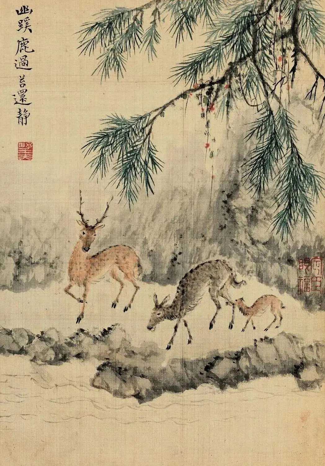 清 华喦 灵兽册。此册写走兽,饮马之安详、山兔之警敏、麋鹿之悠闲及牛犊憇息之态,狸奴酣卧之状,虎之作势欲起,猿之攀援应答,皆栩栩如在目前。这就是中国风遇见艺术