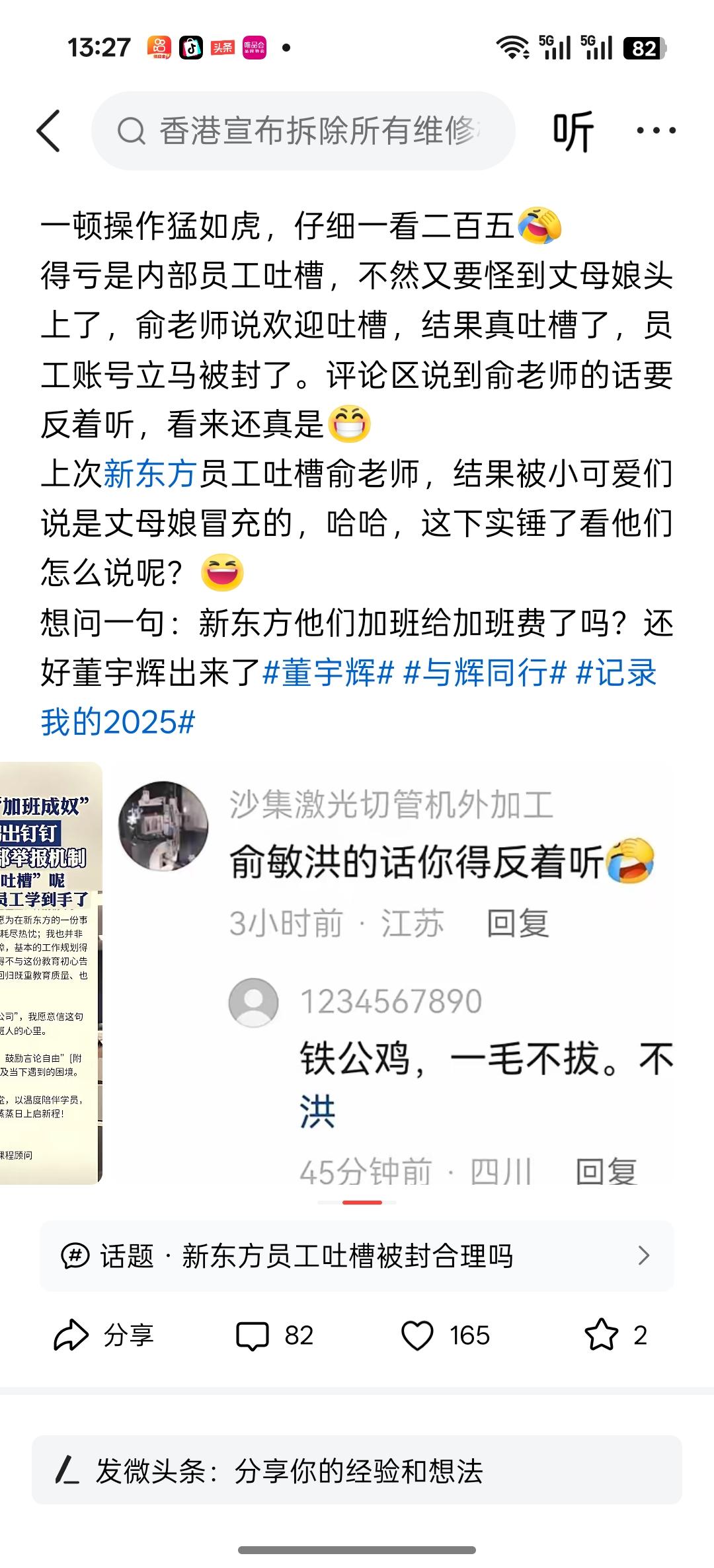 这种公开吐槽的,本来就是想走人了,还用你赶吗[狗头] 别人是蹦人设,俞敏洪是崩公