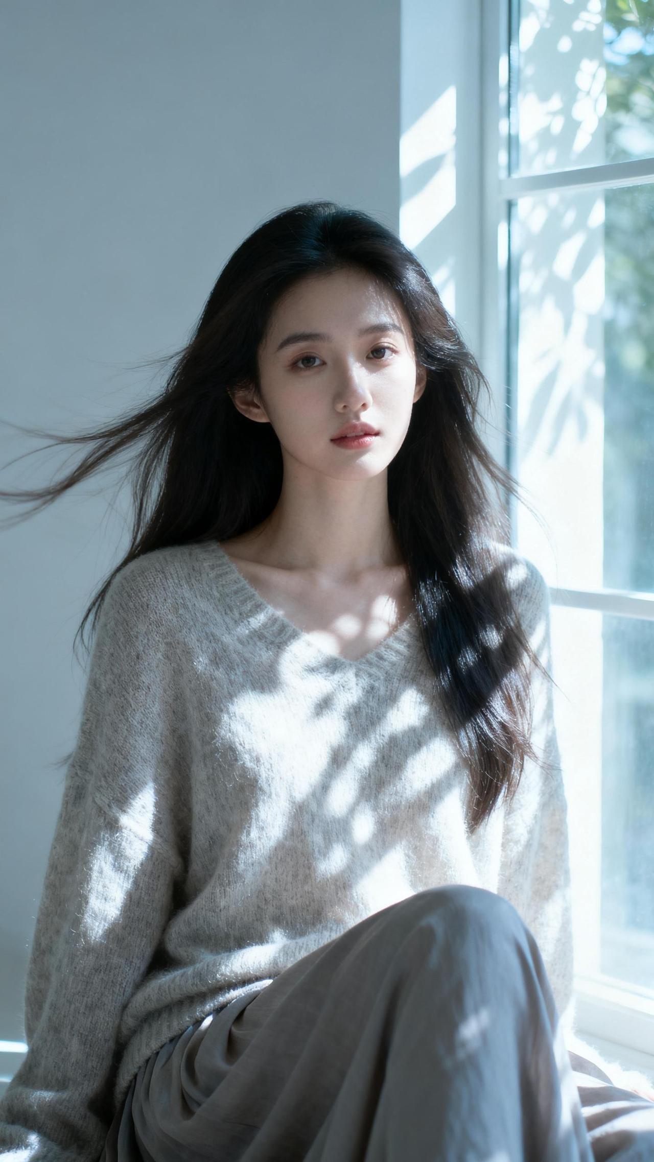 阳光下的少女,倚栏眺望碧波万顷