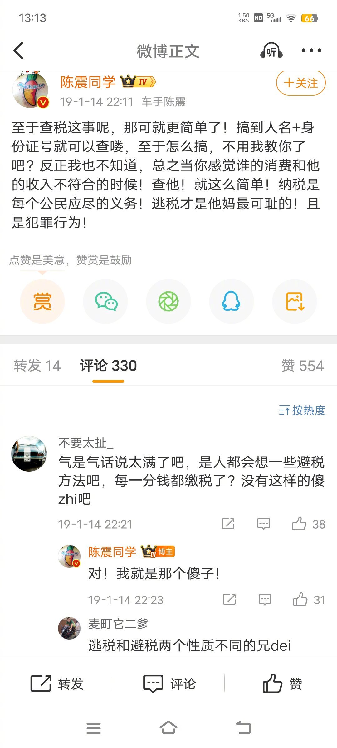 现在陈震的微博充满了对线有意思