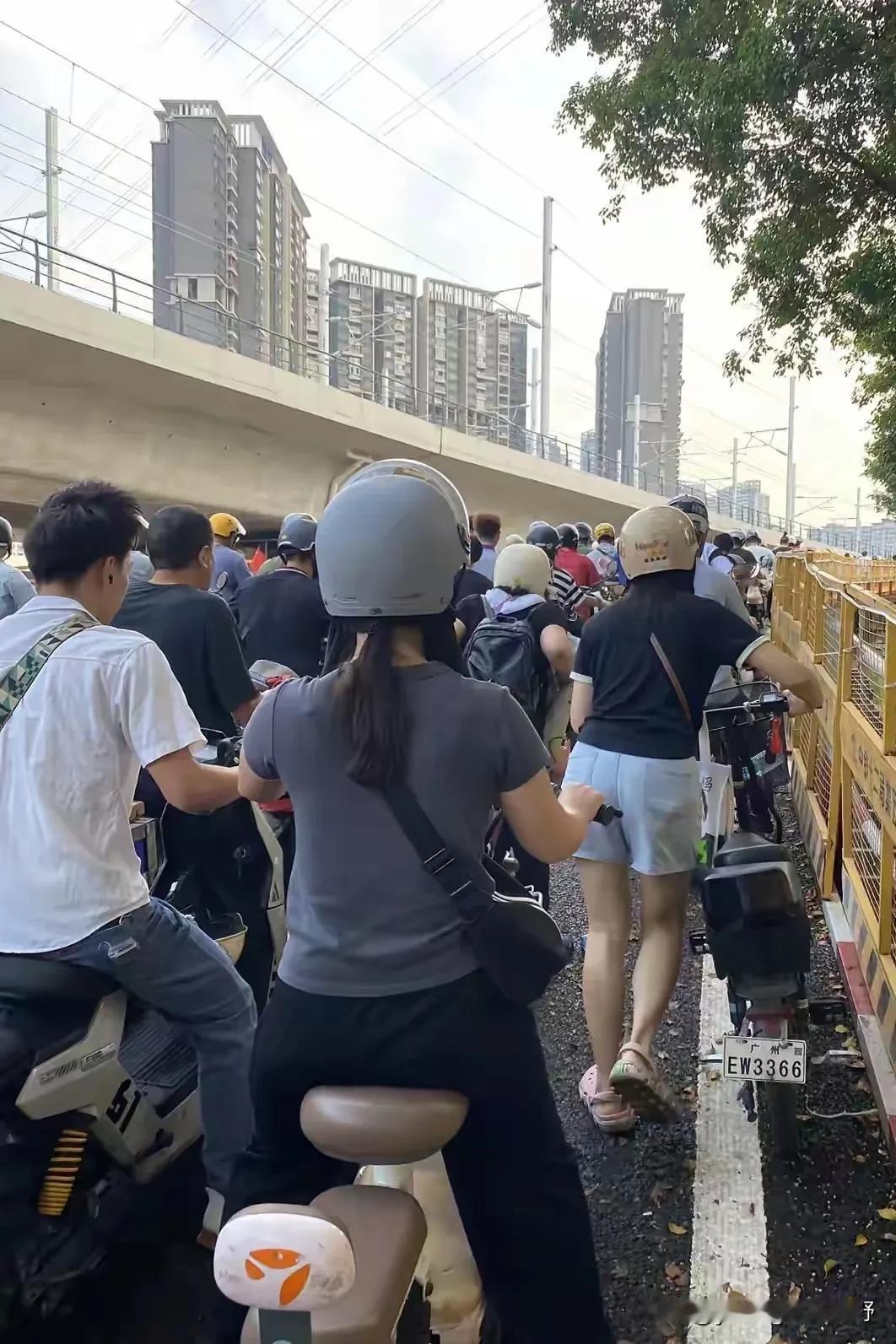 当电鸡成为广州出行的重要交通工具之后,广州现在又面临提供给电鸡行驶的通道不足的困境。比如有网友晒出来早上从滘口进市区的方向,在过珠江桥时,大量的电鸡挤在这一辆机动车道宽左右的通道上,真是行进困难。如果遇到有反方向的人或车,那就更麻烦了。在现在这种情况下,是不是需要重新分配机动车与非机动车道了呢?