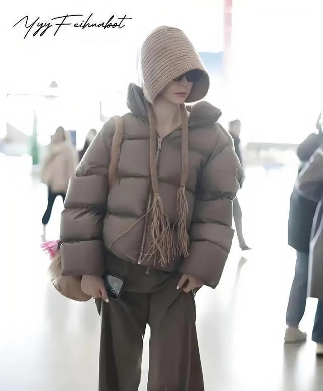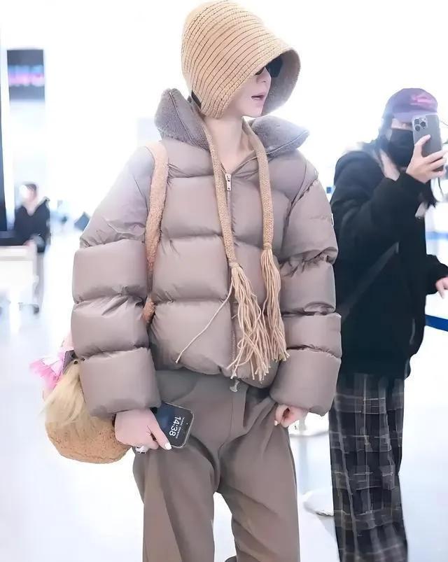 戚薇这波机场路透赢麻了!辫帽+卡其羽绒,松弛感直接焊在身上 戚薇新机场造型太戳复古党!卡其面包羽绒蓬松又暖,搭配同色系辫帽+阔腿裤,顺色叠穿显贵气,流苏帽绳还添了点随性小细节~ 墨镜一戴,松弛又有范儿,这冬日氛围感谁看了不喊句会穿!