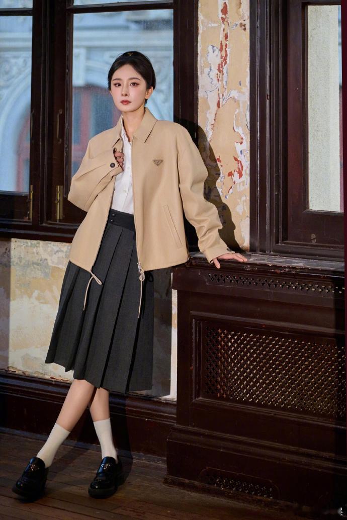 杨幂的 Prada 首套 look 主打学姐风,质感服饰搭配低调配饰,凸显沉稳大气的格调。成熟女性的韵味与品牌调性相融,呈现出高级感十足的穿搭表达。杨幂Prada学姐风杨幂Prada首套look