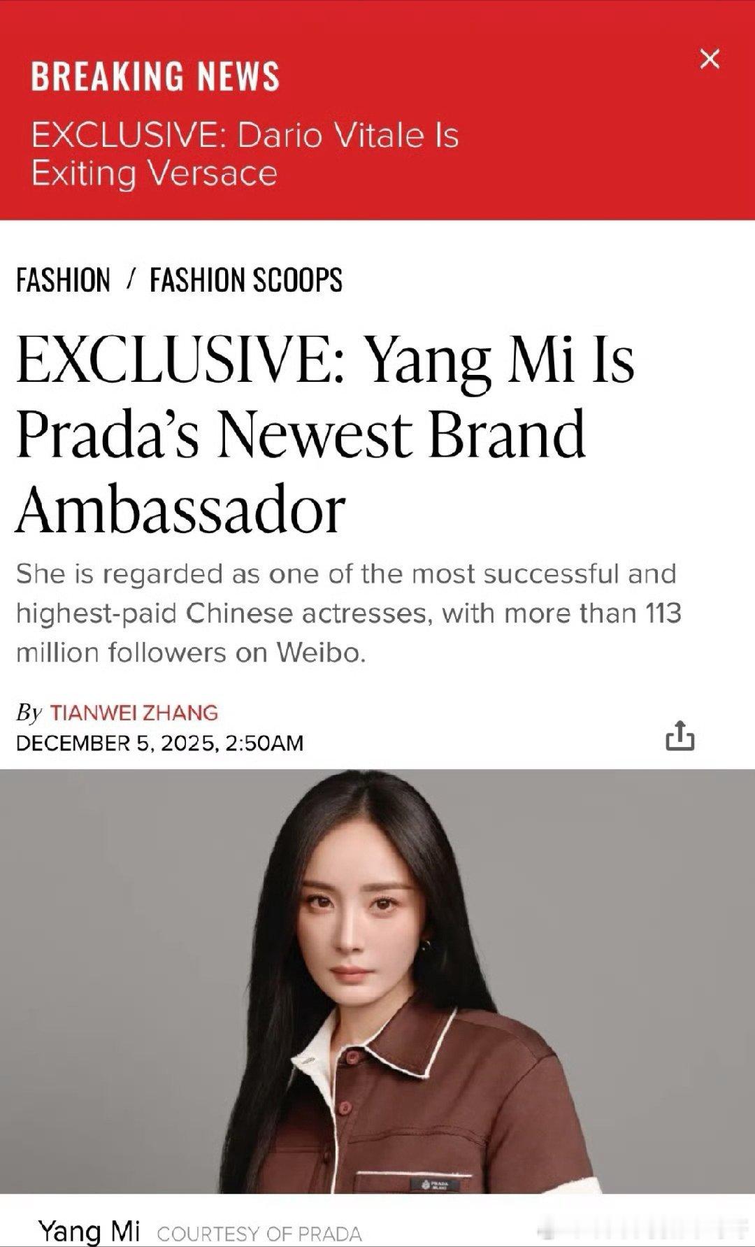 据WWD,杨幂正式出任Prada代言人!恭喜