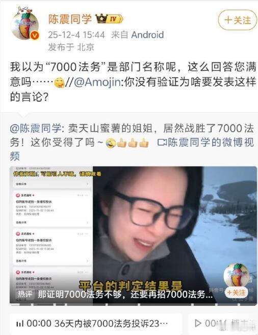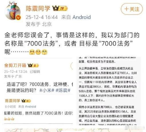 发生什么事了?陈震之前好像没有什么过激的言论,怎么就给封了?有网友说是因为他“7000法务”的言论触及了红线,有点让人看不懂,不知道他阴阳了谁?或者是之前说小米给香港捐款的事情?但那也不算什么违禁的言论吧?不知道究竟咋回事,让子弹飞一会儿…..陈震多平台被禁言陈震多个社交账号被封禁