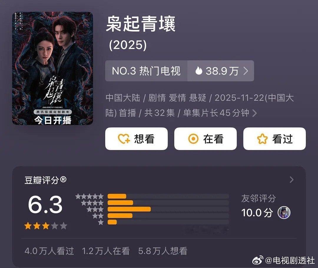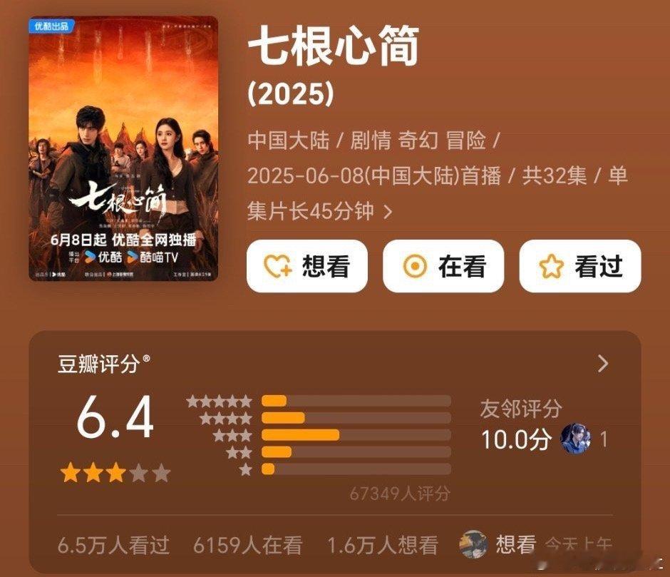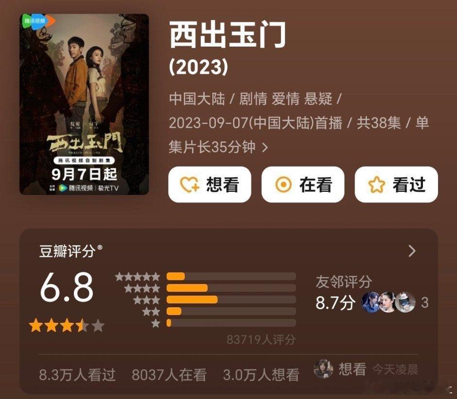 尾鱼小说影视化豆瓣评分,都没有上7分的,没想到是4年前的《司藤》评分最高,怎么越拍越不行了呢?尾鱼的女主选的都很美,你觉得改编运怎么样?6.3《枭起青壤》迪丽热巴 陈星旭6.4《七根心简》宋威龙 刘浩存6.8《西出玉门》倪妮 白宇6.9《司藤》景甜 张彬彬尾鱼小说影视化评分尾鱼小说影视化作品评分