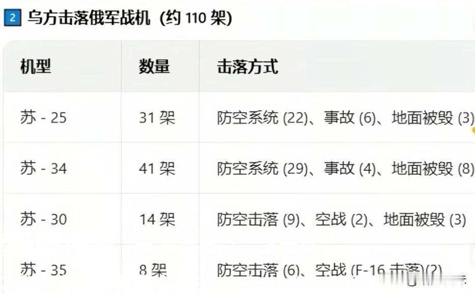 苏-34本应是一款优秀的战斗轰炸机,它应该像二战时的斯图卡俯冲轰炸机一样,随时为前线部队提供火力支援,结果因俄罗斯在电子战、精确制导炸弹上的短板,整体表现可谓是一场灾难。 从图二可以看出,苏-34成为被乌军击落最多的一款战机总共41架。其中被防空系统击落29架,地面被毁8架,事故损失4架,这说明什么? 1.苏-34没被乌克兰的空空导弹击落,说明俄罗斯空军对乌克兰空军是有优势的,但还没有彻底掌握制空权; 2.现代战争,彻底掌握制空权的标志之一必然要有电子压制,这样在苏-34执行任务的时该区域的防空雷达就不会锁定苏-34; 3.俄罗斯的精确制导炸弹性能落后以及产量不足,苏-34无法实现防区外打击,只能突进去降低高度去投弹,在对方防空雷达没有被电子压制的情况下,被击落的风险会成倍增加; 4.苏-34本身的电子对抗能力太差,一旦对方的防空导弹来袭,苏-34本身没有太好的办法摆脱纠缠,如果换成F-15EX情况会好很多。 客观讲,苏-34的载弹量、内油航程以及突防能力,算是一款优秀战斗轰炸机。本应与斯图卡一样成为战场经典,可在俄罗斯人落后的电子战、信息战能力下,居然真的把它当做俯冲轰炸机去使用。 对于苏-34它真的是托付错了人! 苏34性能怎样俄苏35战机 战斗轰炸机 苏-30战机 俄苏24战机 苏系战机 俄苏35 苏34