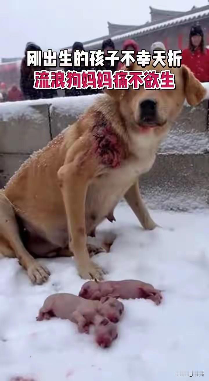太惨了!这天一位阿姨所在的城市下了大雪,她穿着羽绒服去菜场买菜,可当她走到一个公园附近的时候看到许多人围在那里。于是她也上前查看,结果看到了无比凄惨的一幕,一只前腿受伤的狗狗悲惨的在哀嚎,而它的面前躺在几只刚出生的小奶狗。 它的孩子一出生就在这冰天雪地里夭折了,听旁边的人说它估计是太饿了然后去一家包子铺讨食,老板非但没给它吃的还打伤了前腿,它跑到了这里,直接生下了这些狗宝宝,估计是受伤的原因,狗宝宝一生下来就夭折了。 阿姨顿时心生怜悯之心,于是她把狗宝宝都安葬了,然后就赶紧把狗妈妈送去了宠物医院治疗,后来就收养了它,相信在她的照顾下,这只狗妈妈也会越来越好的。