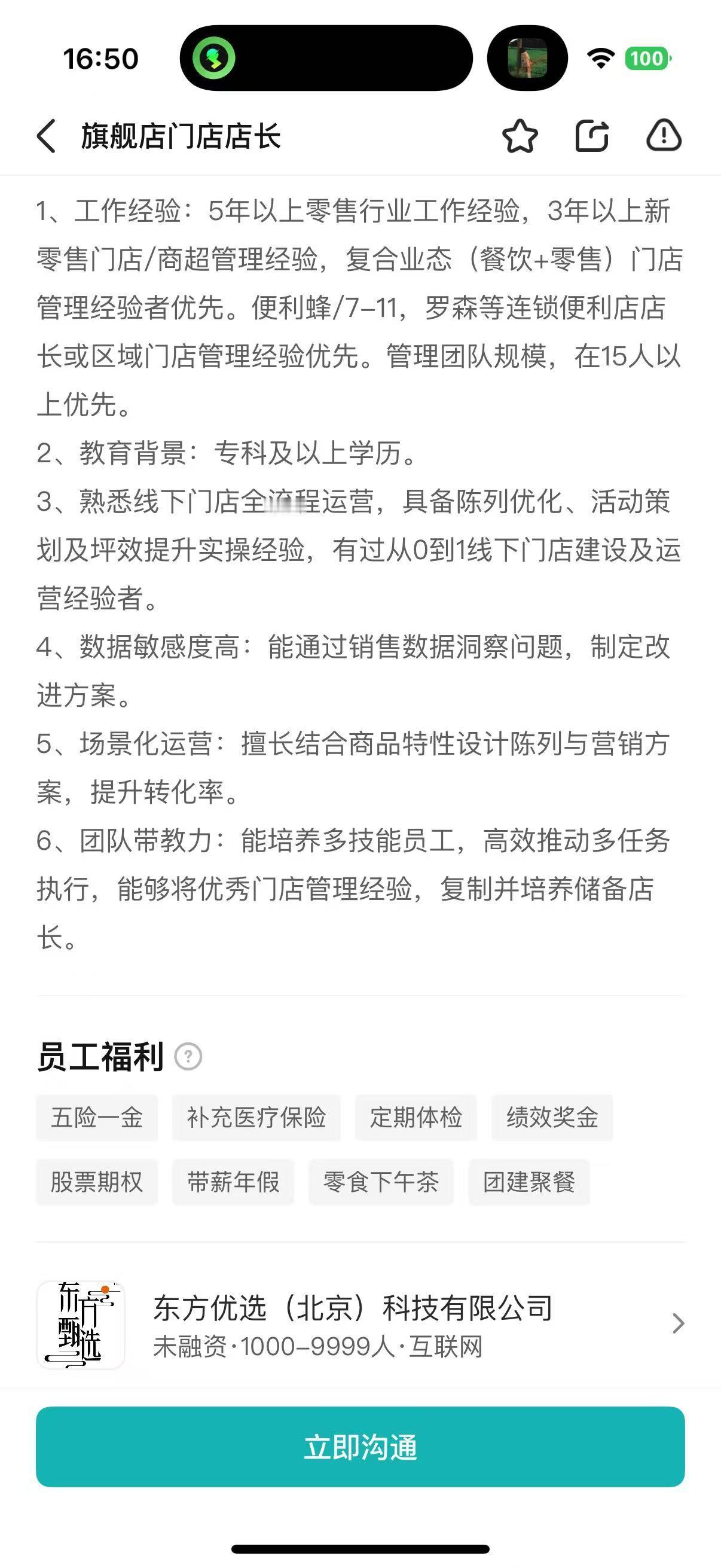 东方甄选要在线下开店了 最近招聘软件显示,东方甄选正在以1.5万元到3万元每月为北京线下首家旗舰店招聘储备店长,优先锁定餐饮和零售的复合业态管理人才。虽然东方甄选没有官方回应,但是可以看到俞敏洪一直在想的“全国百家门店”的计划,已经默默抬上日程了。 为什么要开店? 最直观的是线上流量红利见顶,出现营收增长压力。2025财年,东方甄选总营收同比下降32.7%,净利润暴跌97.5%,仅剩620万元;抖音渠道订单量腰斩,主账号粉丝被“与辉同行”反超;当然这也离不开直播电商行业整体增速放缓的原因。俞敏洪早前就指出:“基于外部平台建立的商业模式并不牢靠”,线下门店可减少对抖音等流量平台的依赖,构建自有渠道和私域流量池。同时纯线上模式难以传递商品品质感,而线下店能让消费者“看得见、摸得着、尝得到”,实体门店有助于重建信任。 开店这件事情也并不简单。 一是缺乏线下零售基因与运营经验。东方甄选从直播起家,相对缺少线下的运营经验。二是高昂的运营成本与盈利压力,房租、人员、水电都是一笔新账单。三是激烈且成熟的市场竞争,线下已经有成熟的商家运营,东方甄选怎么从红海中杀出是一大考验。 你看好东方甄选开线下店吗?