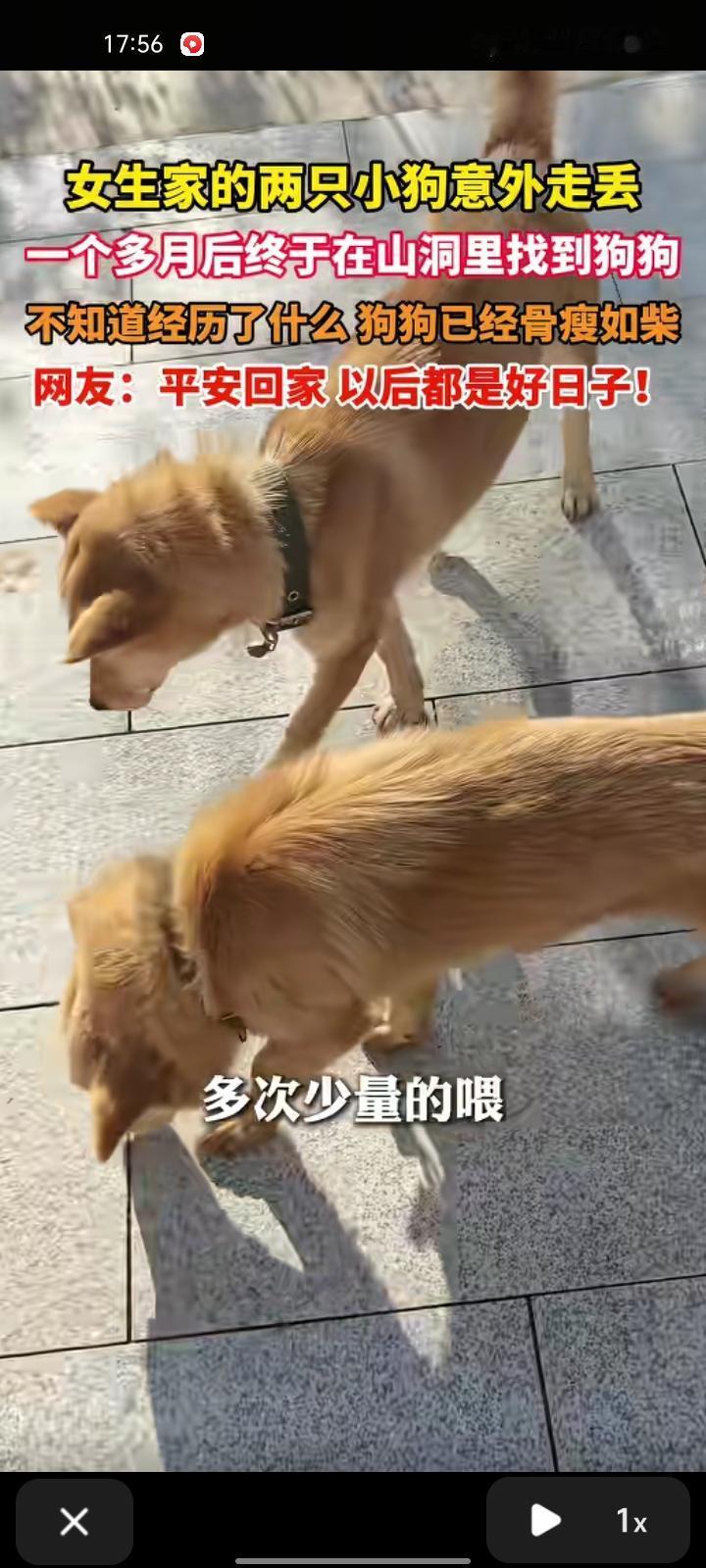 12月2日,岳阳市平江县。女生家的两只小狗意外走丢,周边人只知道狗在山上叫,一个月后终于在山洞找到两只小狗,此时它们饿成皮包骨头了,也不知道经历了什么。当事人介绍,大狗是流浪过来的,生了一只小狗。现在不能一下吃太多,多次少量的喂。 岳阳身边事