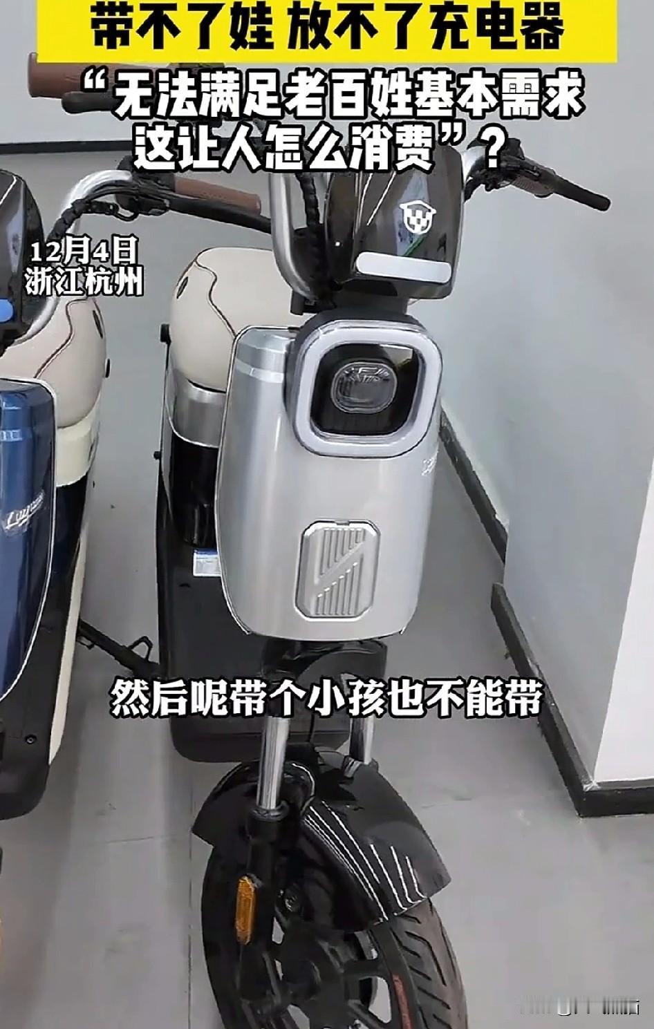 “顾客来了,我都不知道怎么介绍车子!”这是一位卖了28年电动自行车的车商现在所面临的困境。 自从这个新标准电动自行车上市以来,这个老板反而说不会卖车子了,车子又不能带人,又没有储物筐,每天只能背着一个包存放雨衣和充电器,这完全背离了老百姓的日常生活。 买个电动自行车就是为了方便,送孩子上学,去市场买菜,完全能够解决方圆几公里之内的出行需求。 现在倒好,就这样的电动自行车,什么需求也解决不了,还不如买一个自行车。
