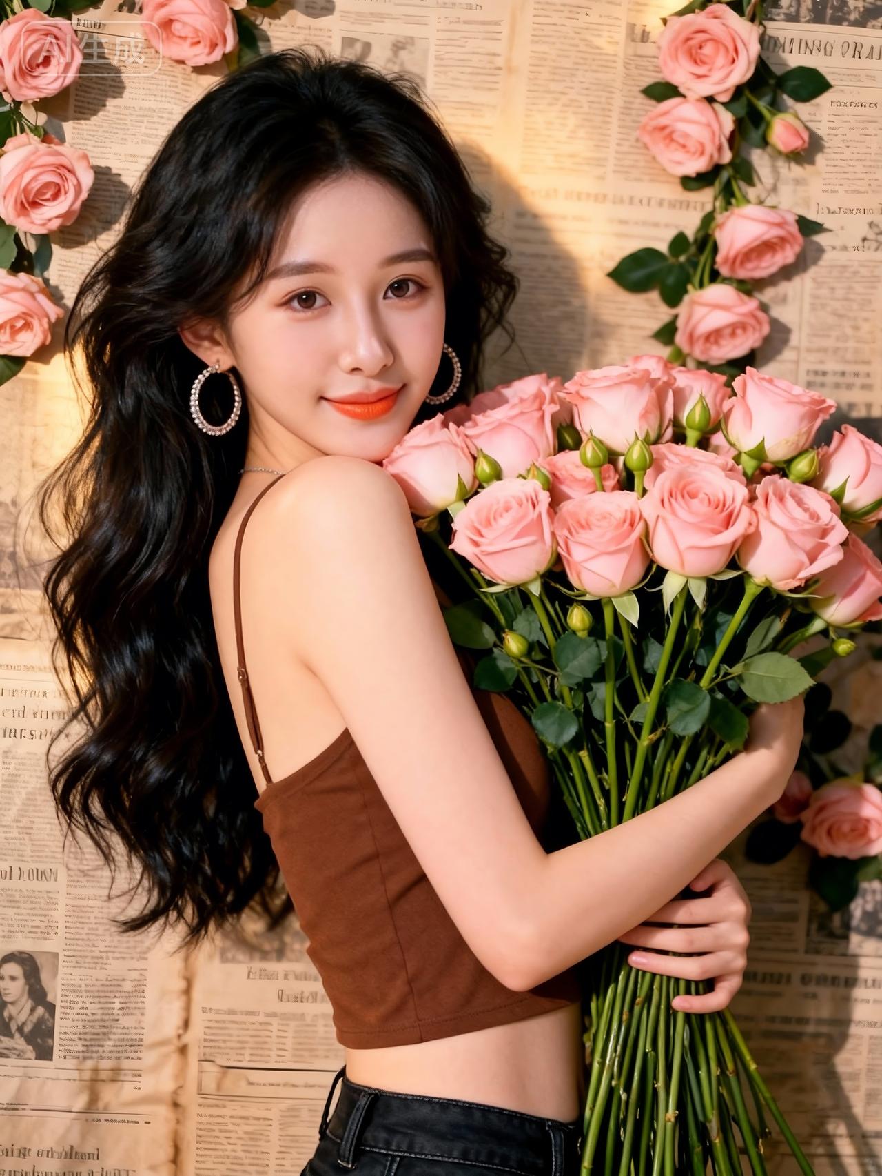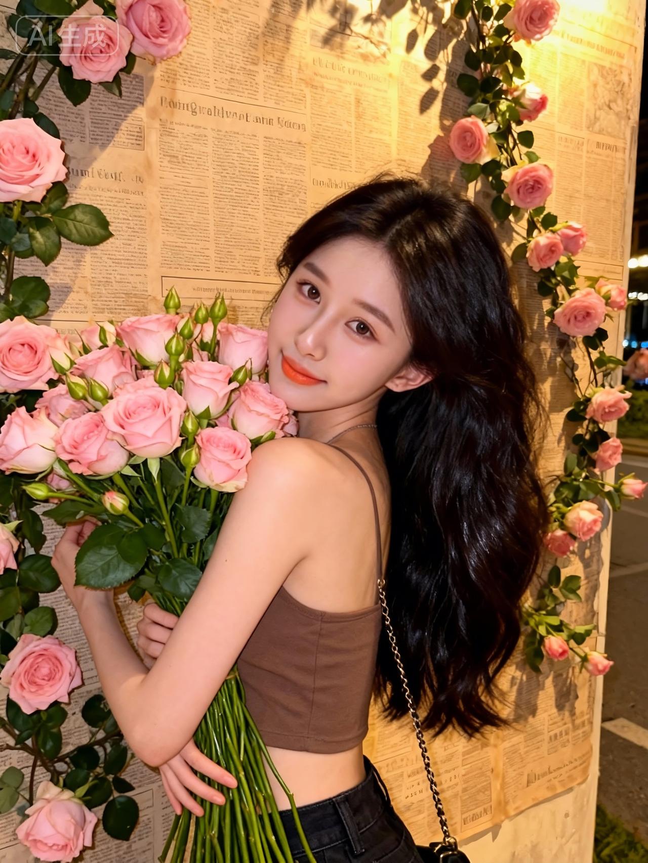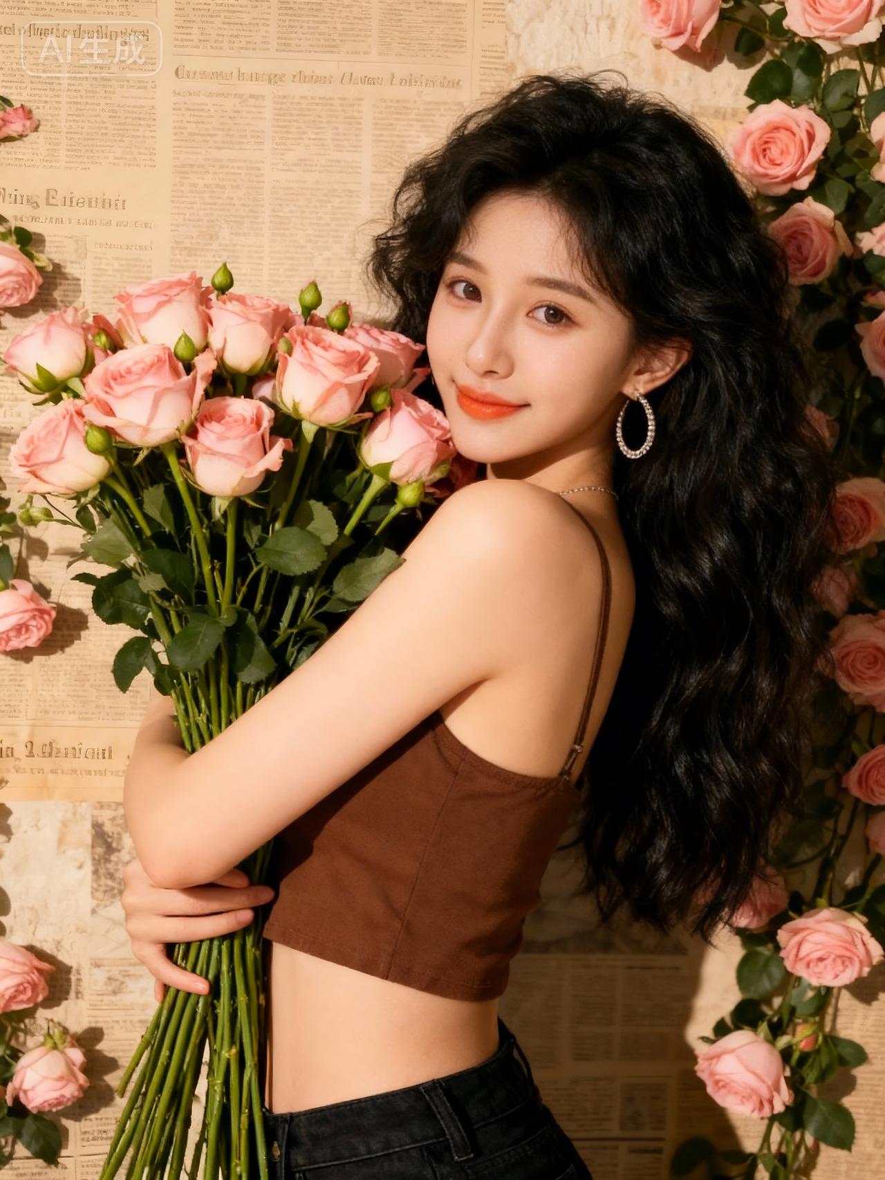 焦糖色吊带+微卷长发,慵懒又性感,抱着一大束粉玫瑰往花墙前一站,温柔氛围感直接拉满~这大概就是“人比花娇”的具象化吧!焦糖色针织套裙 温柔卷发穿搭 红枫叶吊带裙 焦糖色气质穿搭