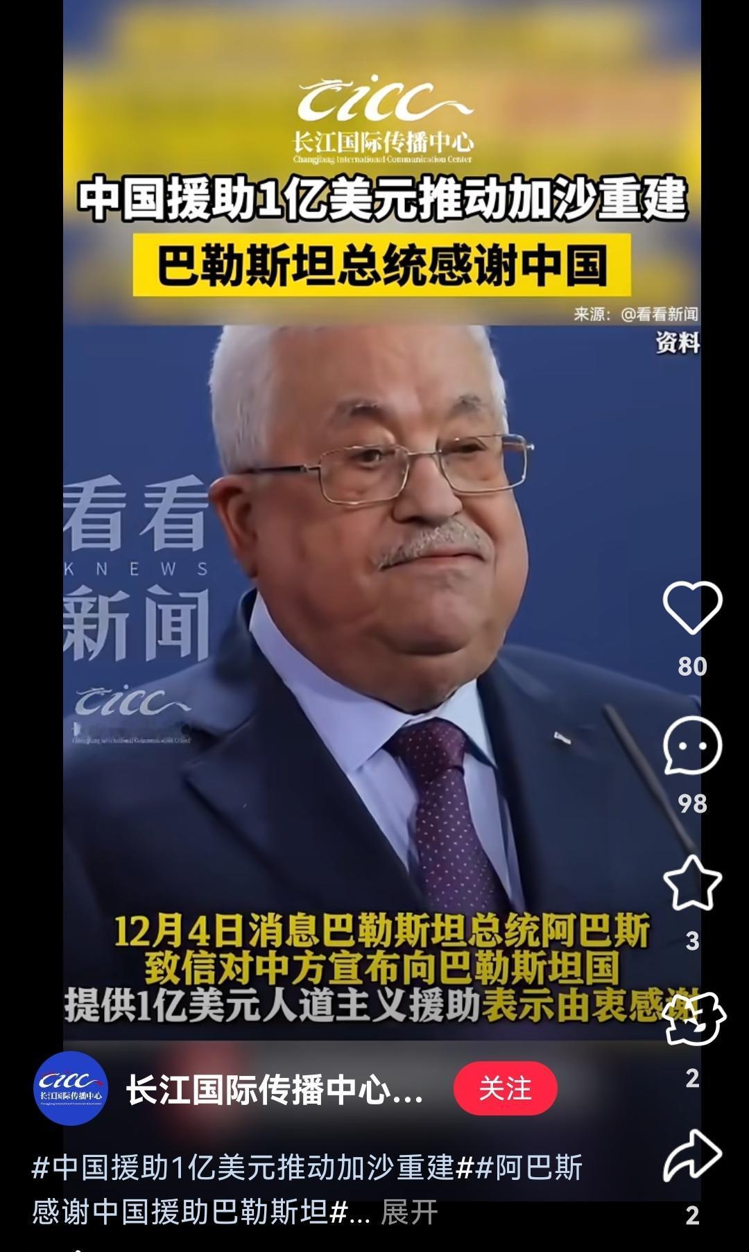 中国援助1亿美金推动加沙重建,了不起我的国,为以后打基础 ,让中国公司进入!