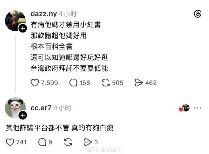 小红薯居然被台湾当局禁了。看来小红薯让蛙蛙们瑟瑟发抖了,害怕越来越多人用了小红薯知道大陆发展的真相,它们就再也骗不了台湾年轻人了。 但是台湾的年轻人已经离不开了啊。 这就是他们宣传的引以为傲的冥猪滋油,一到需要讲真话的时候,他们就露馅了。 他们为什么不禁FB、INS这些呢? 那是他们美国爸爸的产业,他们敢吗?只要敢说一个字,税宗就能把他们的关税提到100%,而且以后连饼都不会给他们画了。 这样的话,他们的天不就塌了吗? 连小红薯都怕,真是没出息。 点右上角关注我,我们一起去看这个魔幻的世界