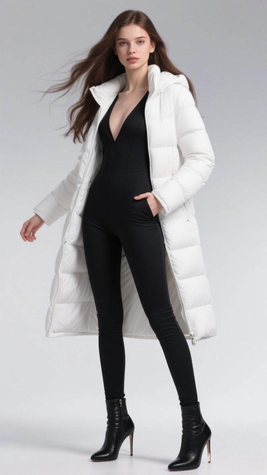冬天想穿得时尚又保暖,黑色紧身衣加白色羽绒服这对组合绝了! 黑色紧身衣能凸显身材曲线,还很显瘦。搭配白色羽绒服,黑白经典配色,简约又高级。要是你是小个子,选短款白色羽绒服,搭配黑色紧身衣和黑靴,再系条腰带强调腰线,瞬间显高。微胖女生也别担心,H型直筒白色羽绒服搭配黑色紧身衣和直筒牛仔裤,能藏住肉肉。 而且白色羽绒服款式百搭,不管是配棕色配件提升质感,还是搭格纹围巾走甜酷风都可以。快试试这组搭配,让你时髦过冬天! 白色加绒外套 韩版白色羽绒服 白色名媛羽绒服