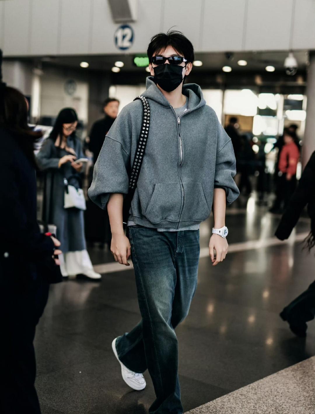 站姐跟拍陈飞宇,可能是把陈飞宇拍的受不了了,于是走到一个安检口禁止拍照的牌子前面,默默的用手指了指牌子。 那意思就说,这里禁止拍照,站姐们别拍了。 说实话,公共场合被一群卖图的站姐围追堵截拍照,其实挺烦的。 陈飞宇能保持情绪做到这份上不发火,也是不容易。 不过我好奇的是,他手腕上那个表是不是很贵呀,感觉特别抢镜头,陈飞宇好像特别喜欢的样子。