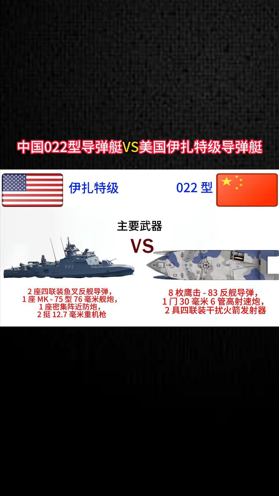 中国022型导弹艇VS美国伊扎特级导弹艇。军事科普 军事科技 军事爱好者 军事迷