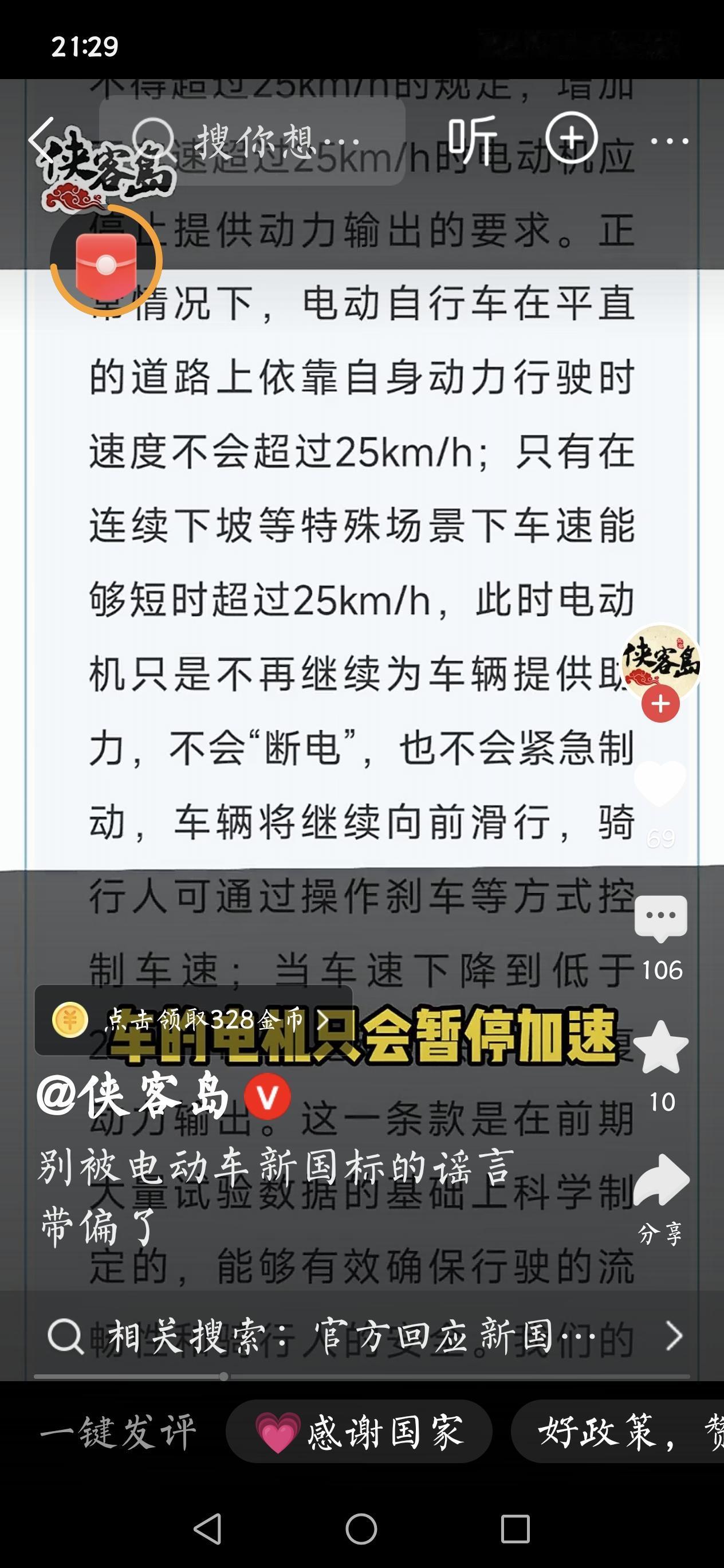 侠客岛近日发文提醒公众不要被关于电动车新国标的谣言所误导,强调应理性看待相关政策信息。文章主要内容包括: 澄清谣言:部分网络流传的关于新国标的“限制电动车速度”、“禁止某些车型”等不实传言,实际上并不存在官方明确的限制措施。新国标的核心目标是提升电动车的安全性、环保性和标准化水平。 政策目的:新国标旨在规范市场秩序,保障消费者权益,促进产业健康发展,而非限制或淘汰现有合理车型。标准的制定是为了推动行业升级,而不是打压某一类产品。 理性看待:公众应关注官方渠道发布的权威信息,避免被不实信息误导。企业和消费者应共同关注标准的具体内容和实施细节,理性应对政策调整。 行业影响:新国标将促使企业提升产品质量,推动技术创新,长远来看有利于行业的健康发展。消费者也能享受到更安全、更环保的出行体验。 总结:侠客岛强调,面对关于电动车新国标的各种谣言,公众应保持理性,不要被虚假信息带偏。正确理解政策的初衷和内容,有助于行业的良性发展和消费者权益的保护。 如果你需要更详细的解读或相关背景,我可以帮你补充!侠客岛:别被电动车新国标的谣言带偏